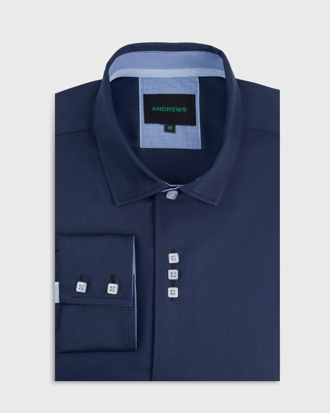 Camisa Casual - Azul con Contraste en el Puño, Cuello y Pechera