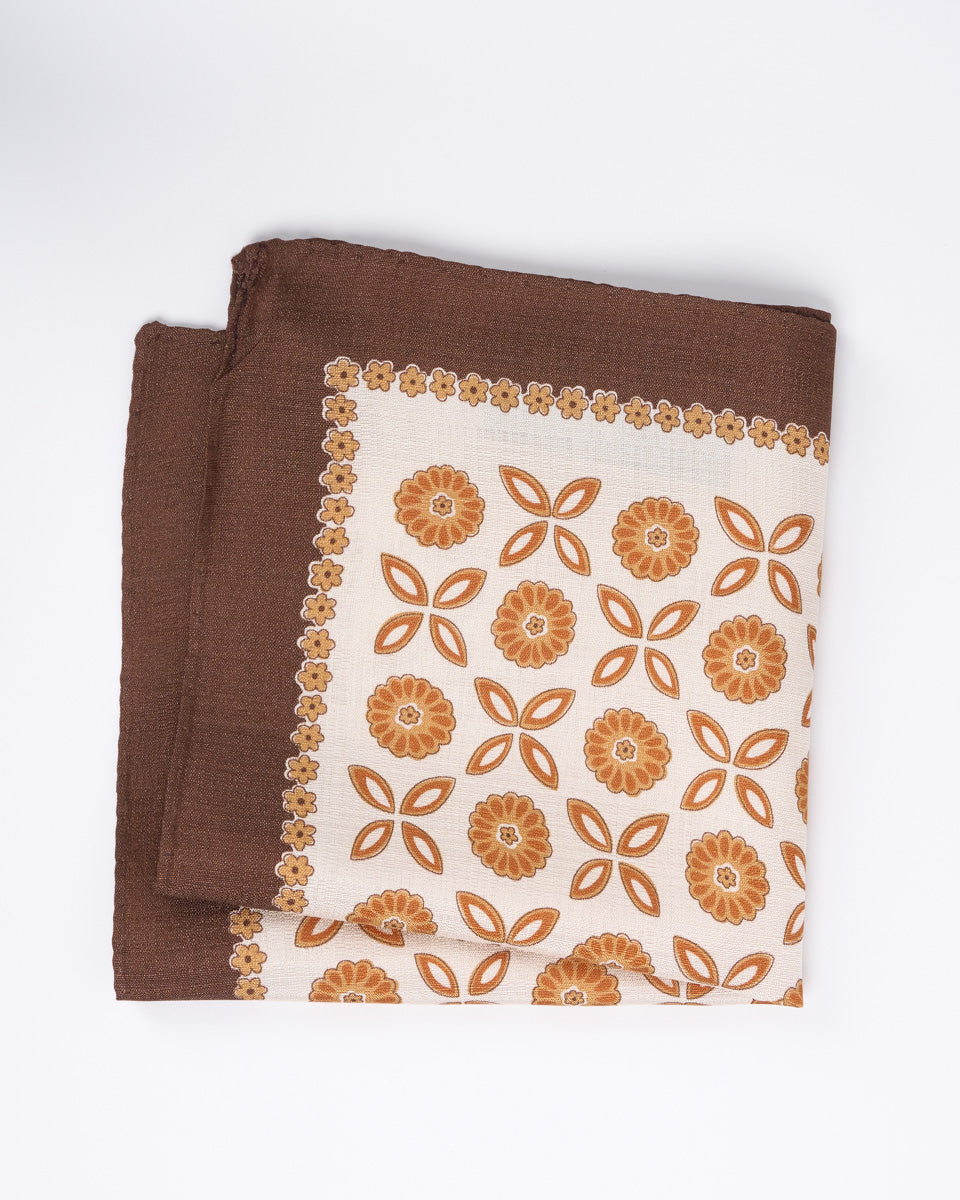 Pañuelo de Seda - Marron con flores Azules