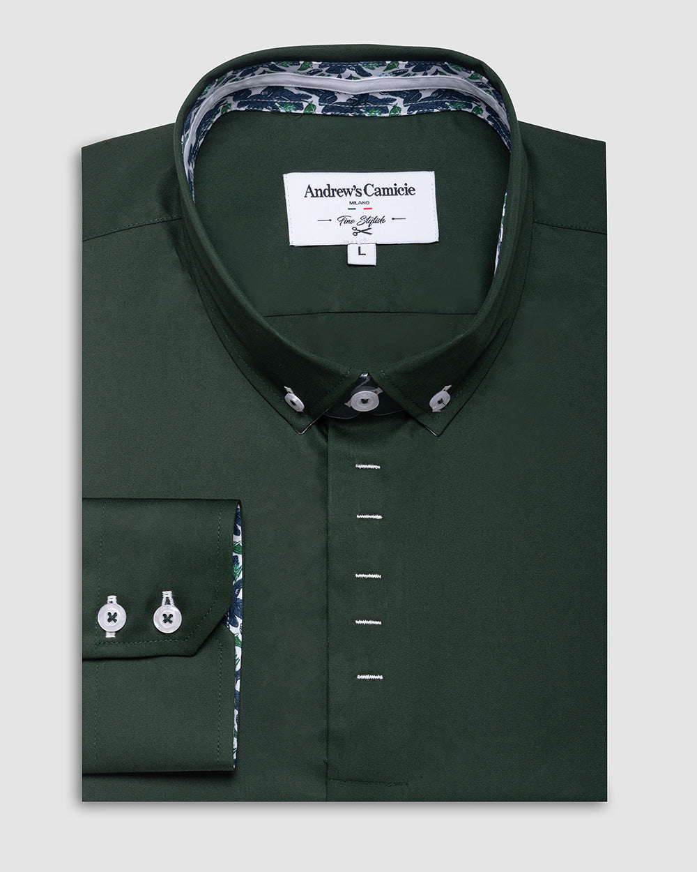 Camisa Casual - Verde con Contraste en el Puño, Cuello y Pechera