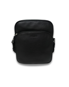 Bolso cruzado de piel de vacuno legítima de grano natural con acabados en negro satinado.