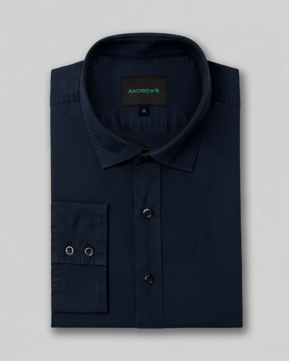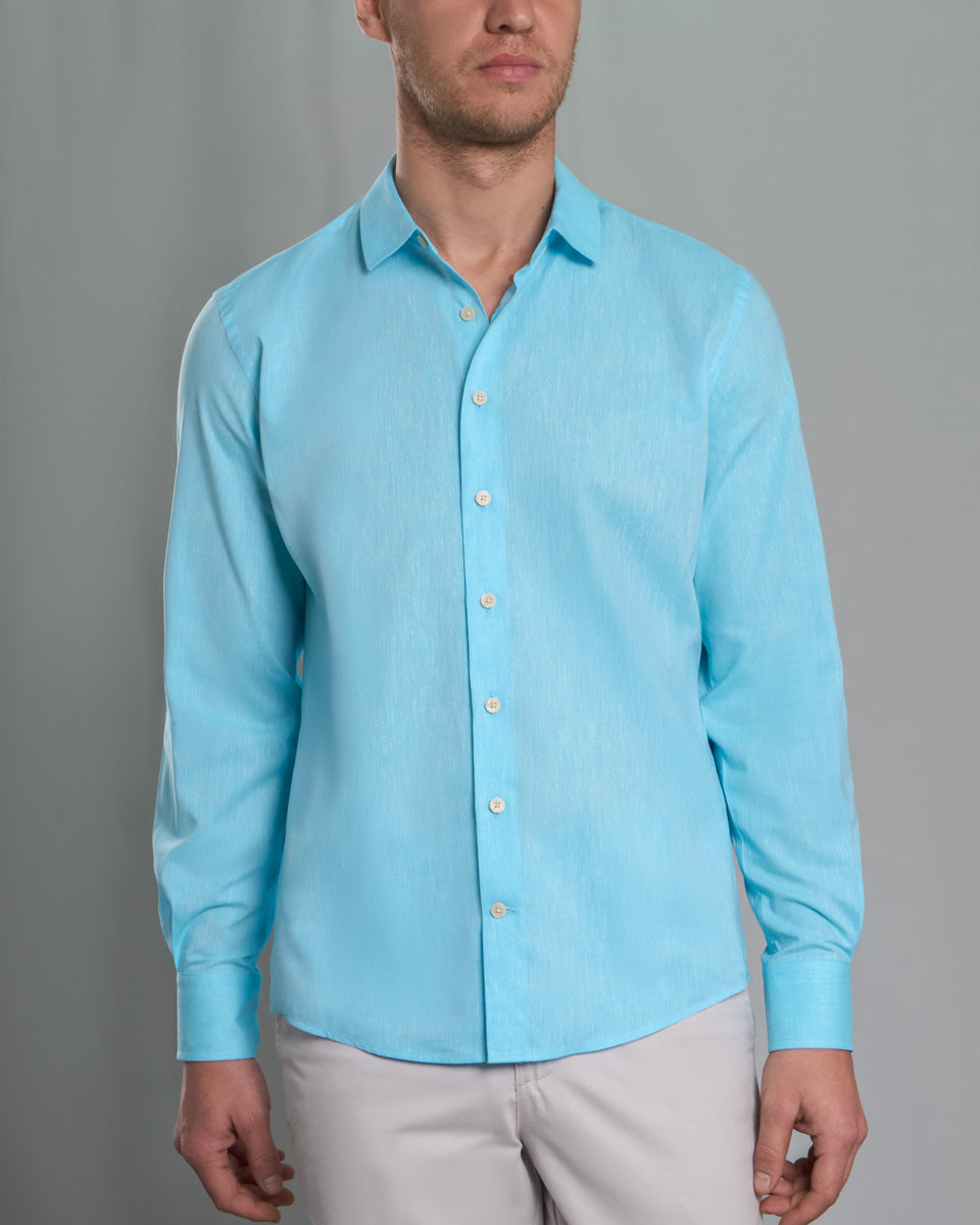 Camisa Casual - Azulino con Contraste en el Puño, Cuello y Pechera