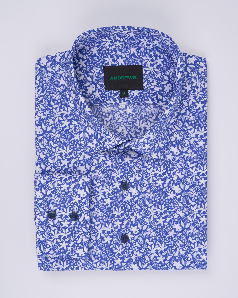 Camisa Casual Estampada - Azul con Detalles de Flores