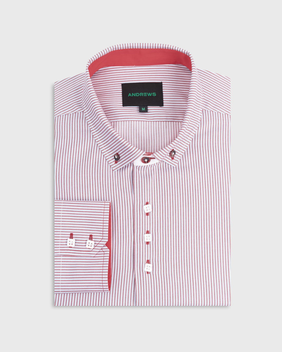 Camisa Casual - Rojo con rayas Blancas con detalles en el Puño y Pechera