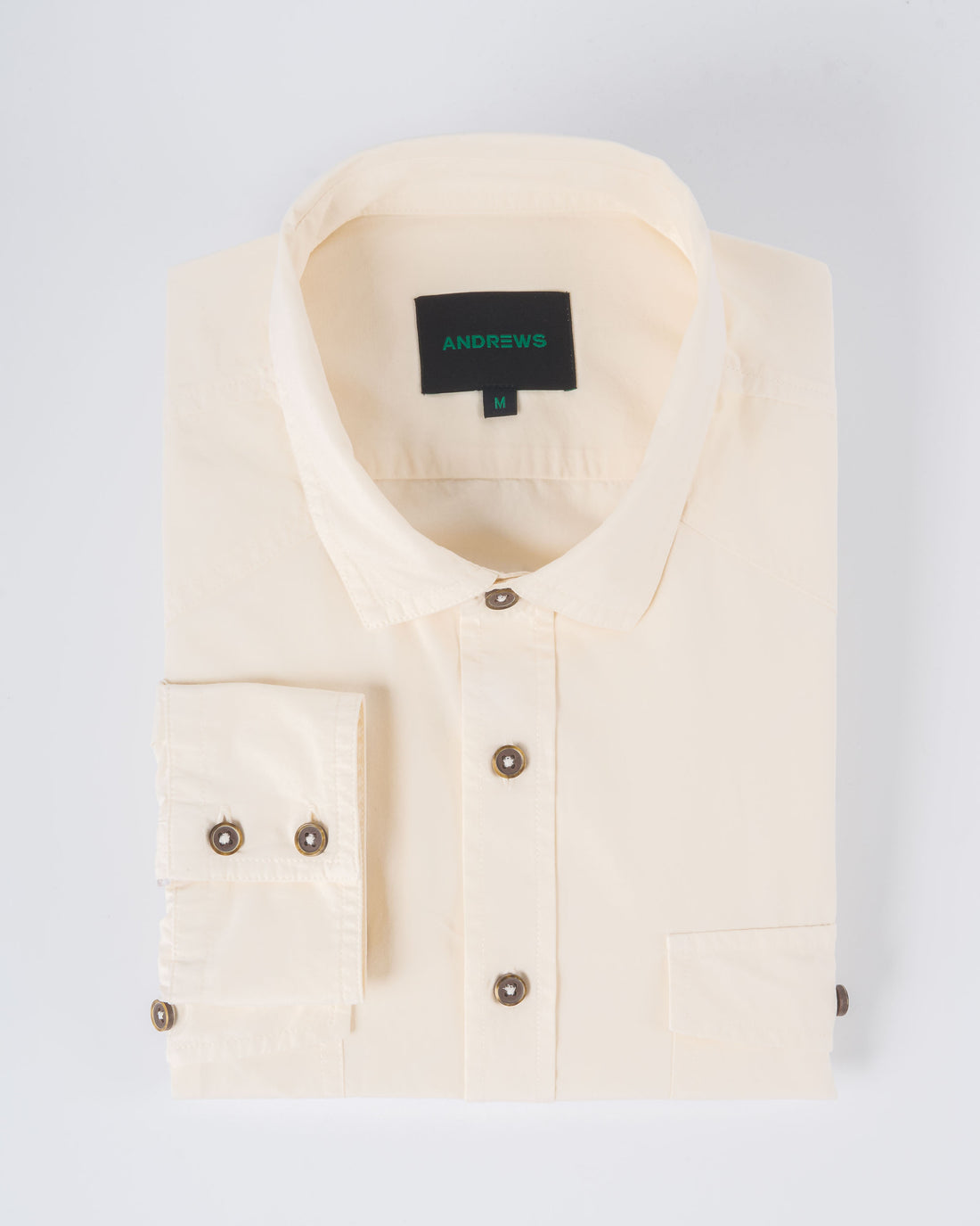 Camisa Casual color Blanco con Detalles Marrón en Cuello y Puños