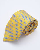 CORBATA AMARILLO CON FLORES GRIS Y PUNTOS AZULES