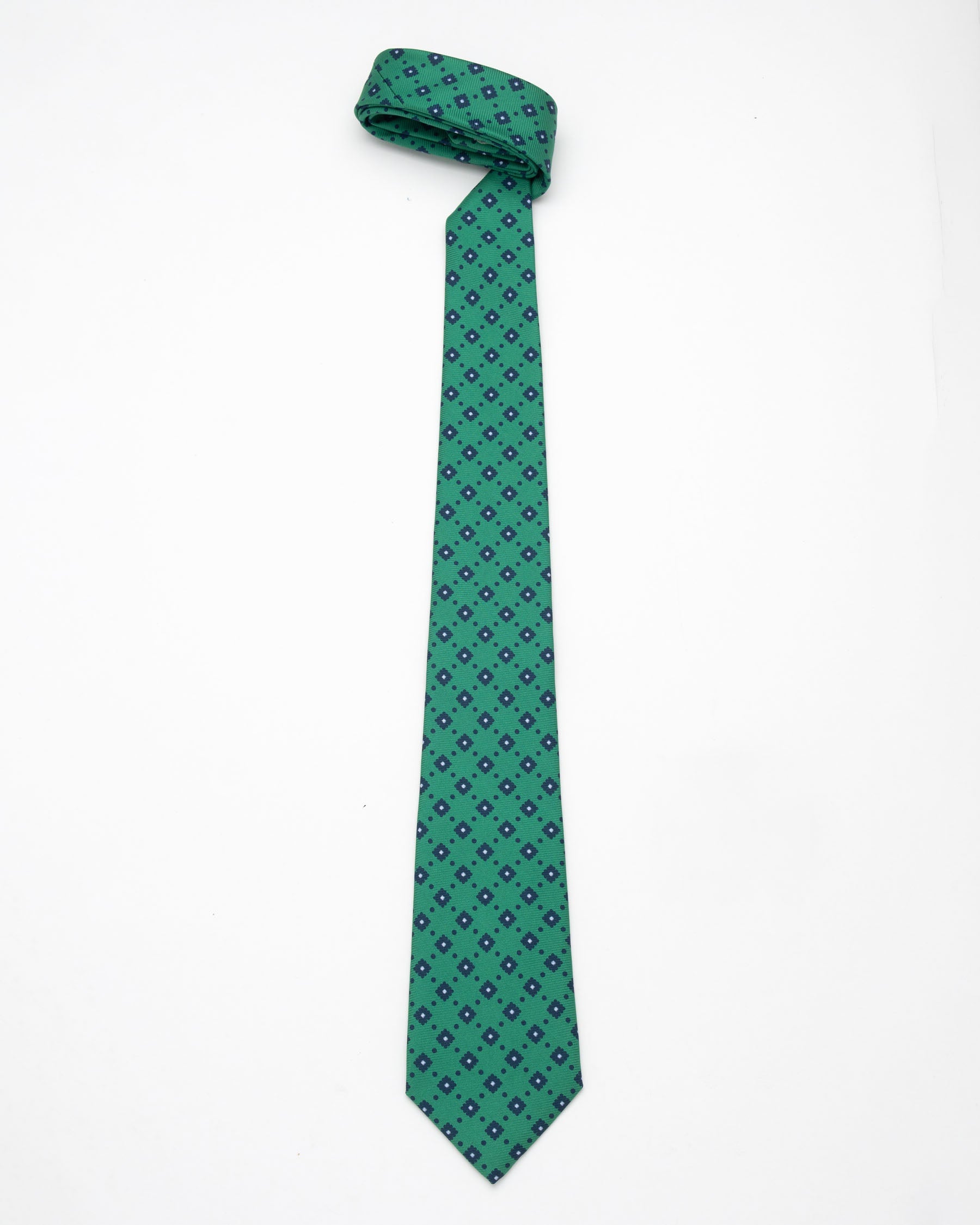CORBATA VERDE CON DISEÑOS AZULES EN FORMA DE ROMBO