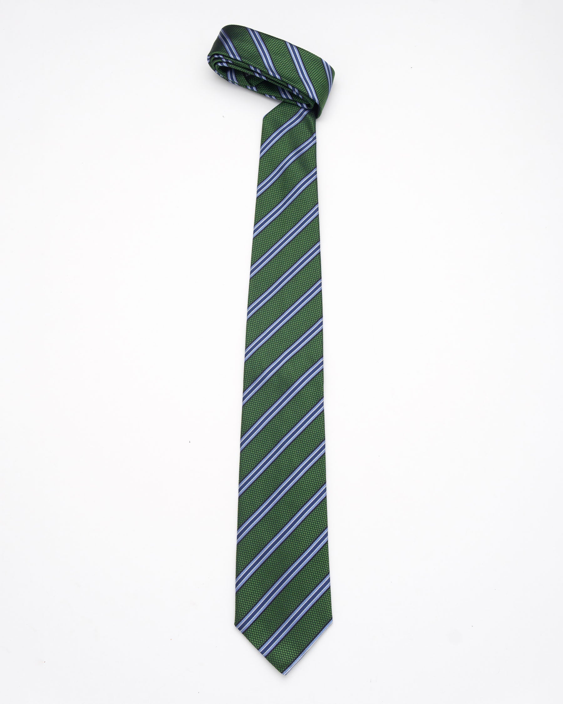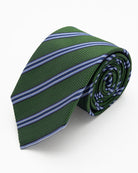 CORBATA VERDE CON RAYAS AZUL Y CELESTES