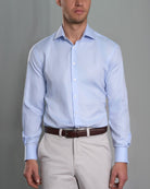 Camisa Vestir dobby - Cuello Italiano gemelo redondo Azul