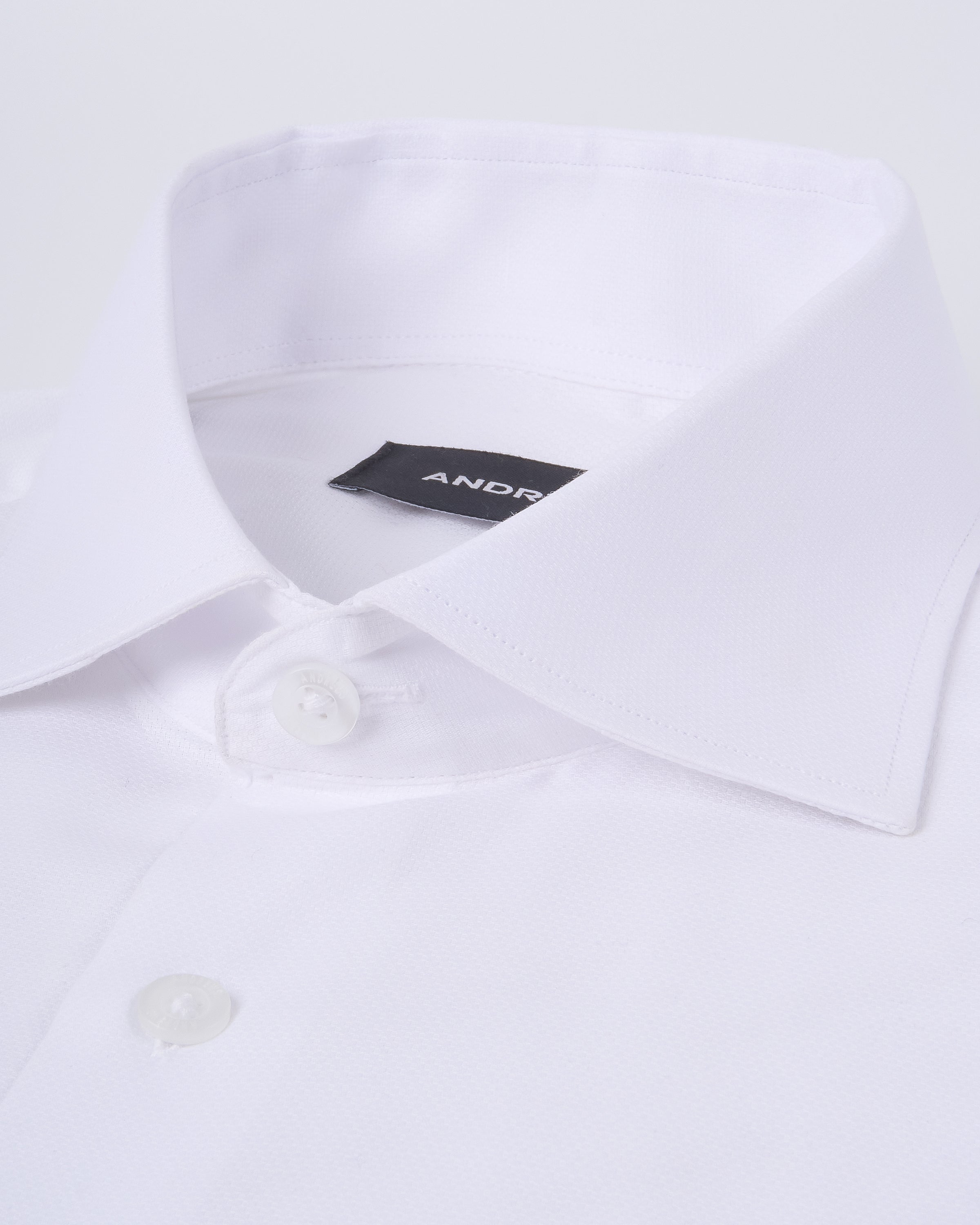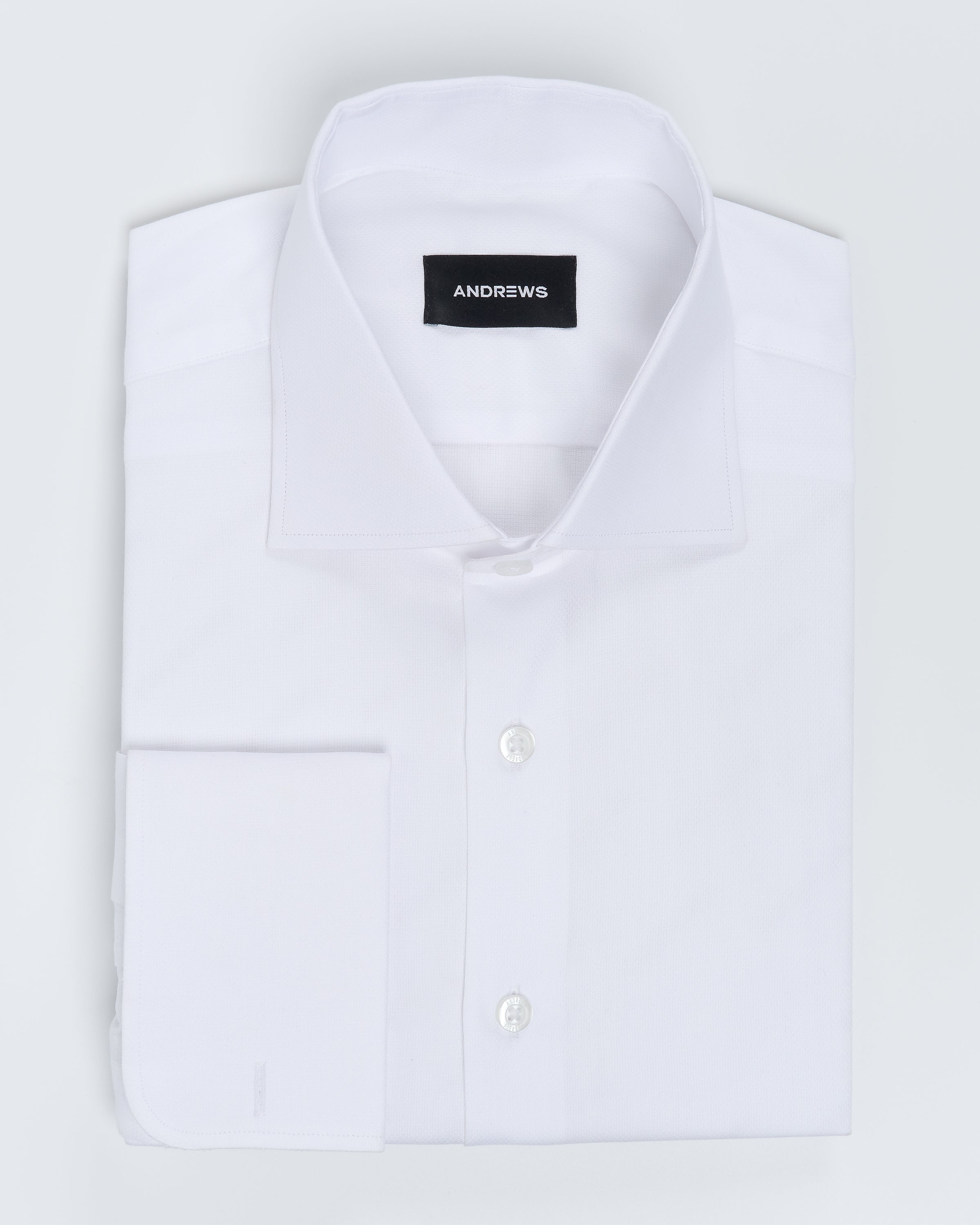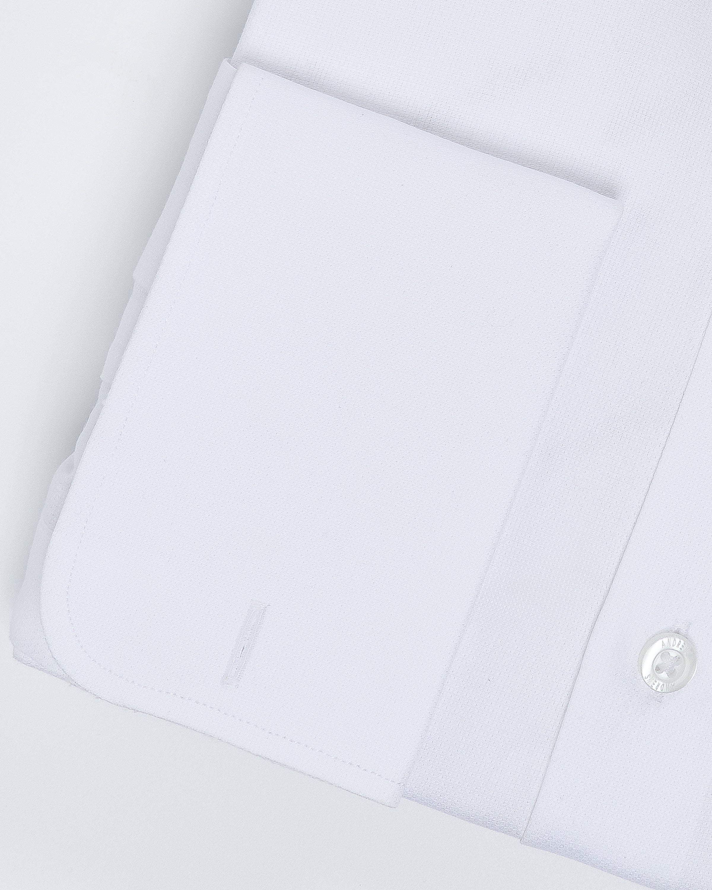 Camisa Vestir dobby - Cuello Italiano gemelo redondo Blanco