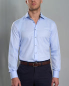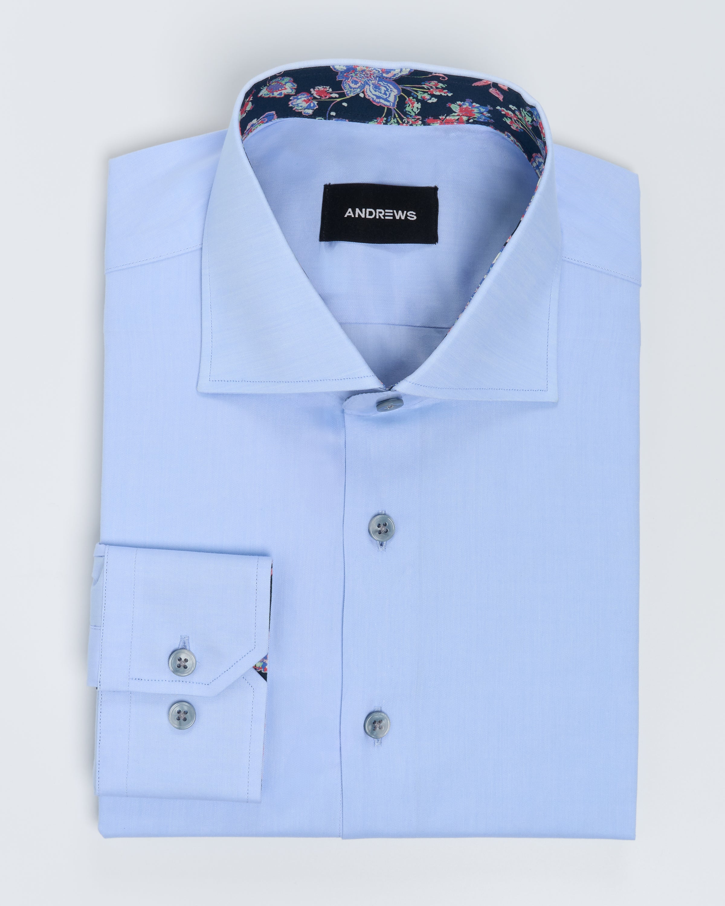 Camisa vestir Business Celeste - Cuello Italiano puño simple