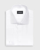 Camisa Vestir dobby - Cuello Italiano puño doble uso Blanco