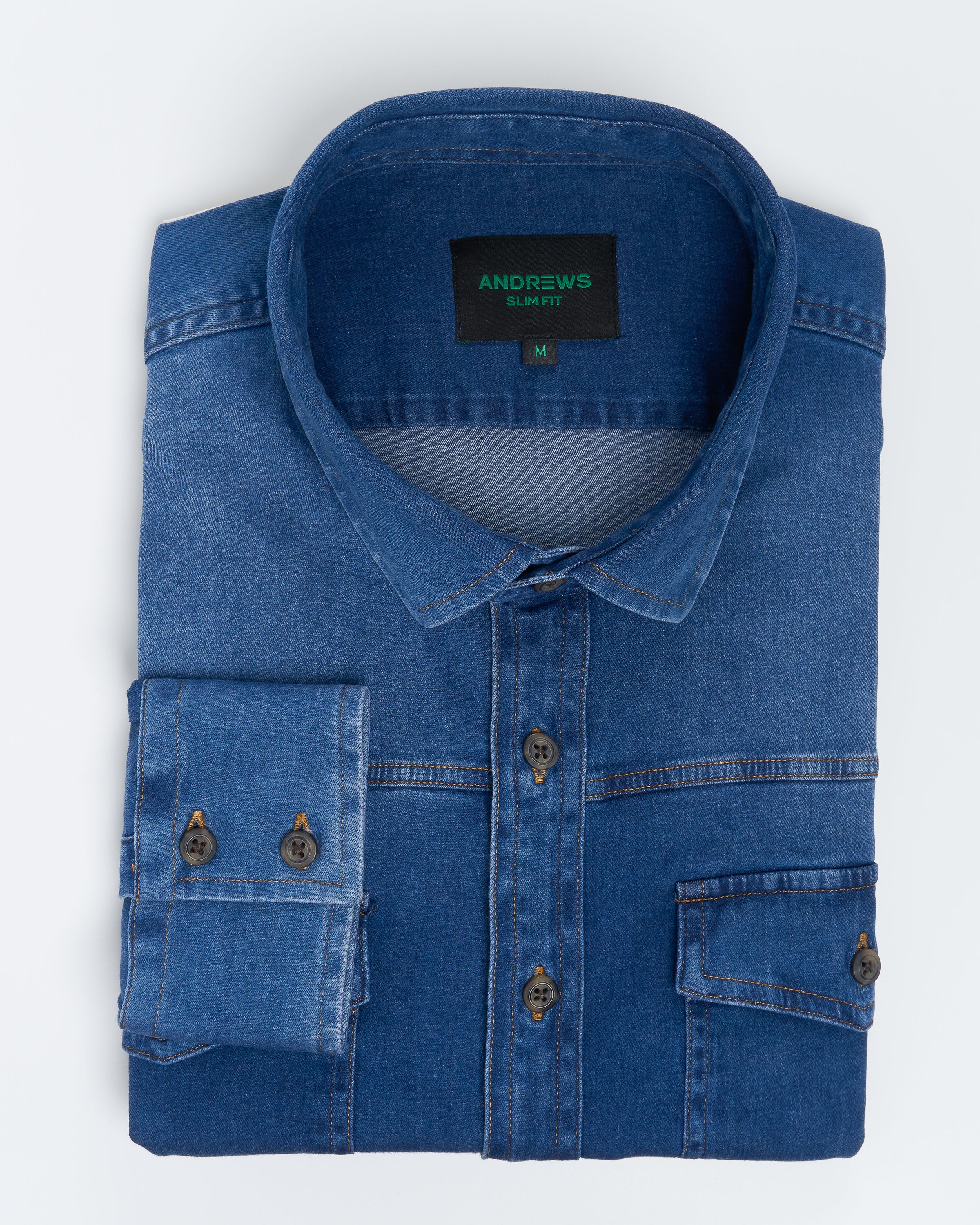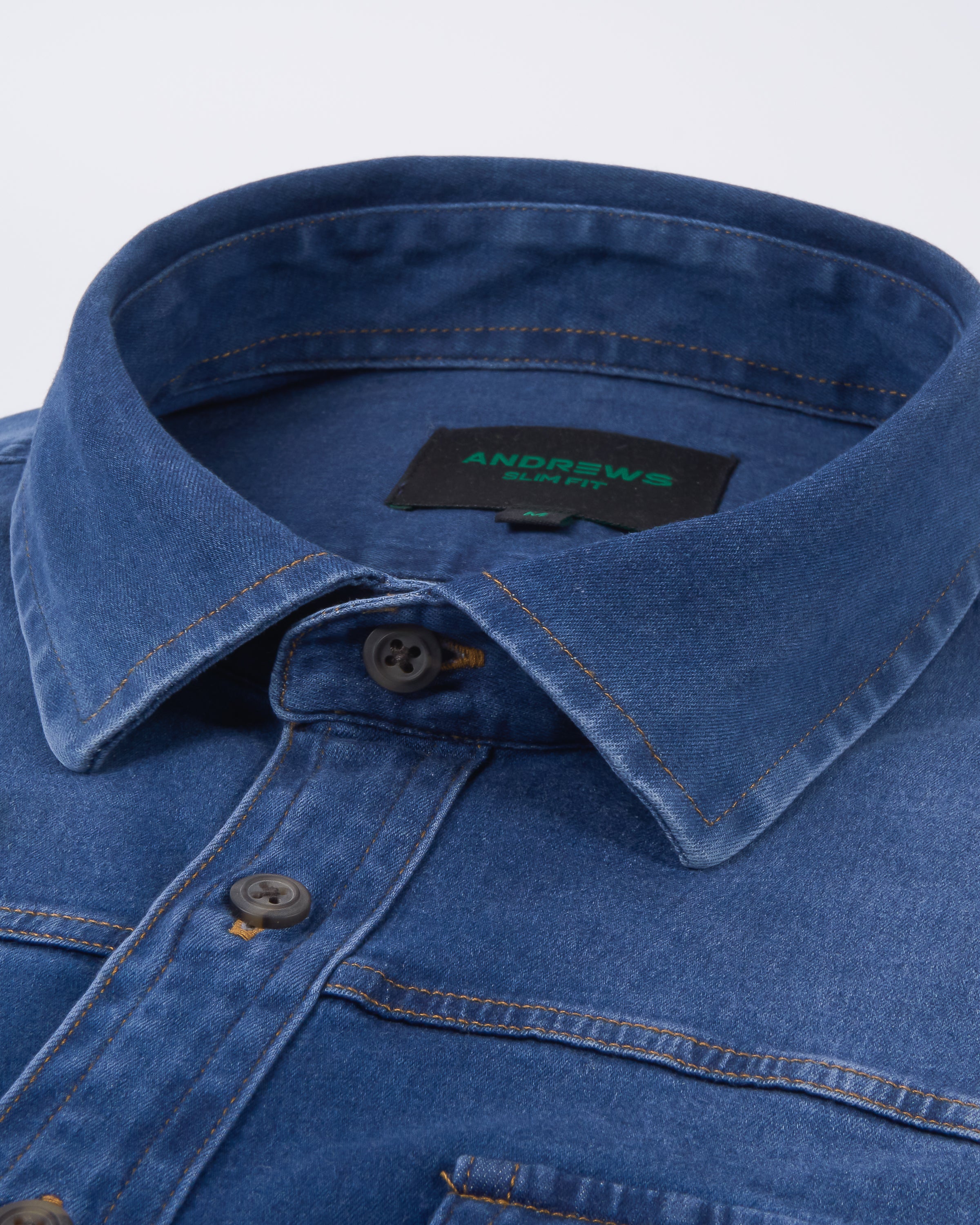 Camisa Casual denim stretch- Puño simple 2 botones slim azul