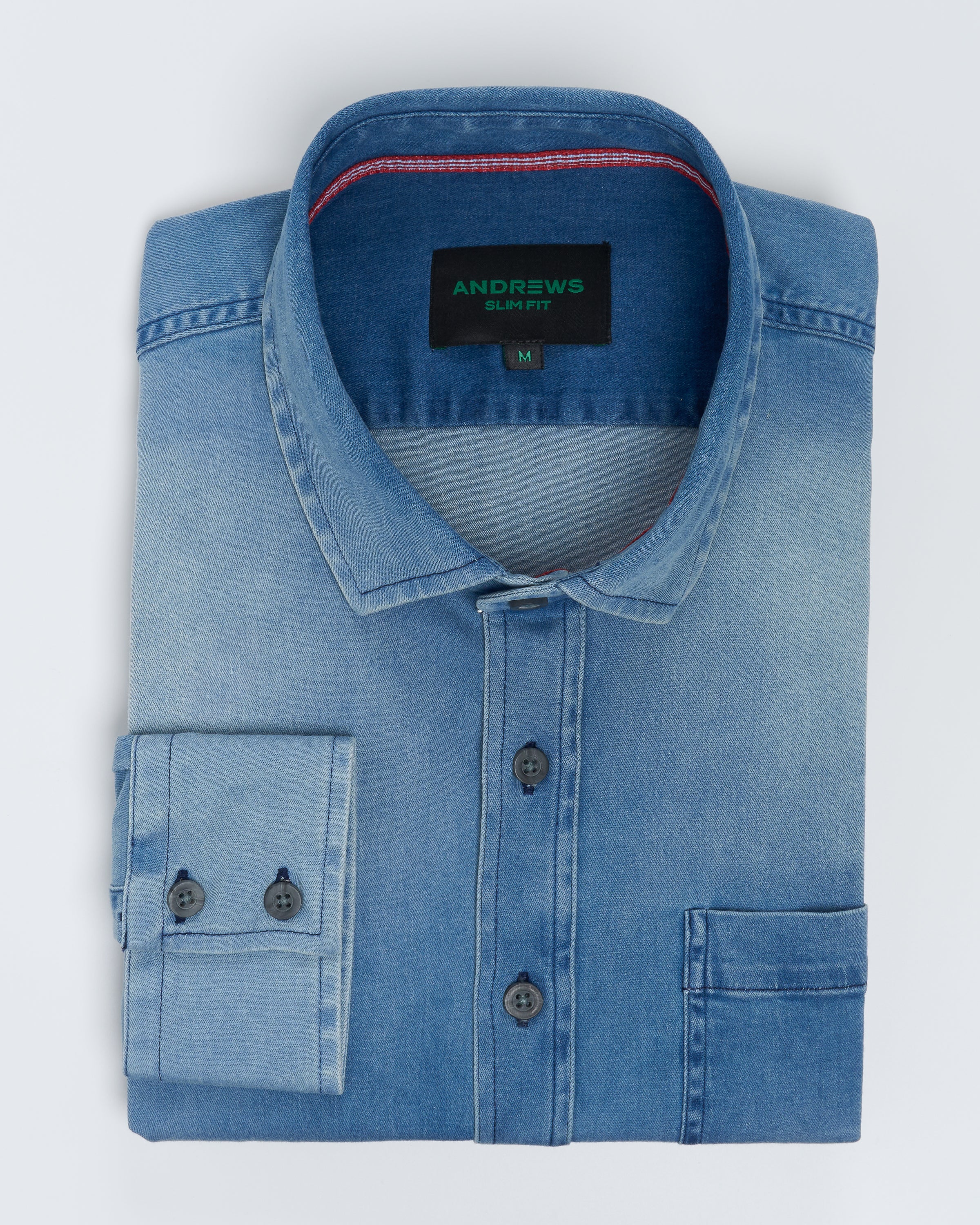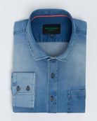 Camisa Casual denim stretch - puño simple 2 botones Slim azul