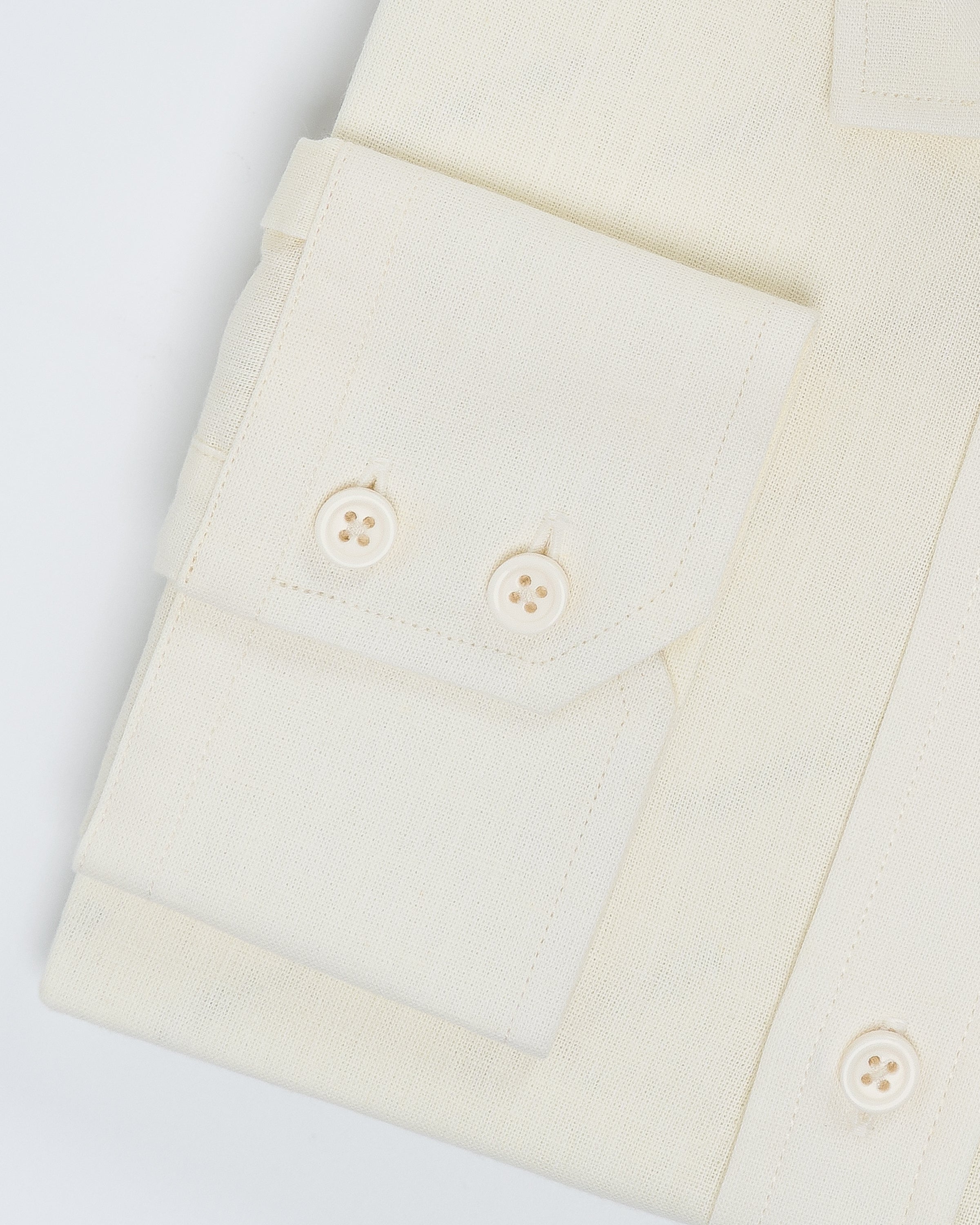 Camisa Casual Lino - Cuello Italiano puño simple 2 botones-Crema