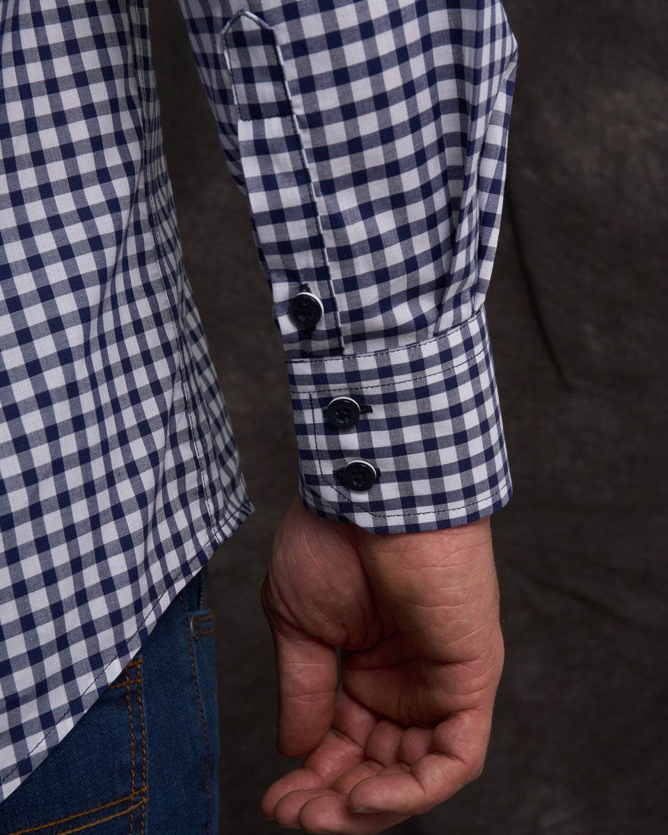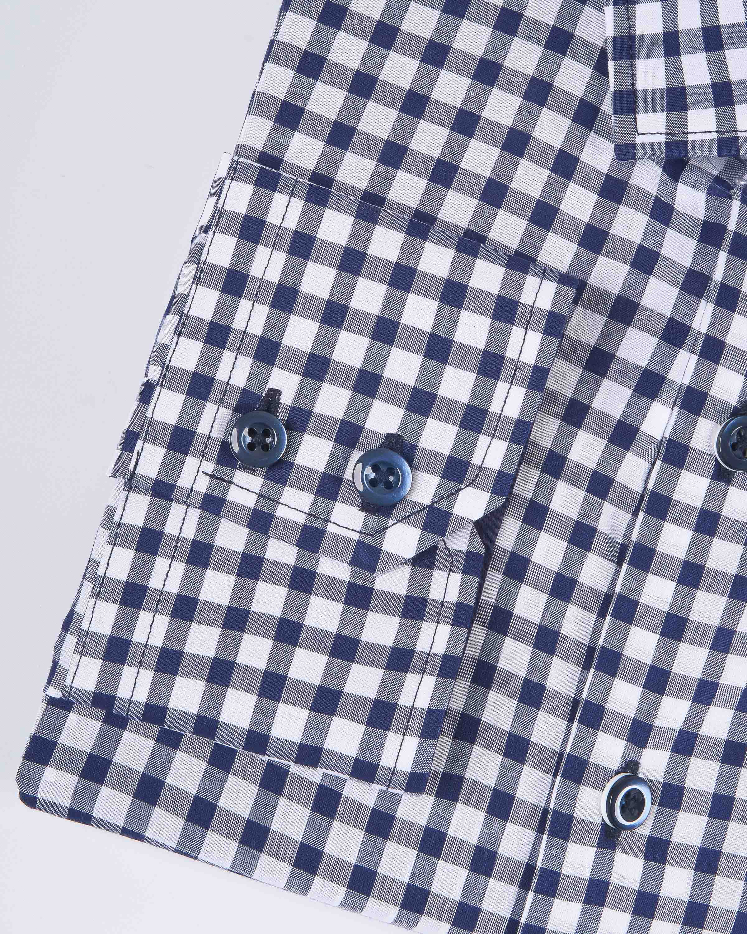 Una prenda esencial en todo guardarropa masculino. Esta camisa está confeccionada en 100 % algodón Pima Premium, reconocido por su suavidad, resistencia y transpirabilidad. Su diseño de cuadros azul marino con bordado distintivo aporta un toque sofisticado y moderno.