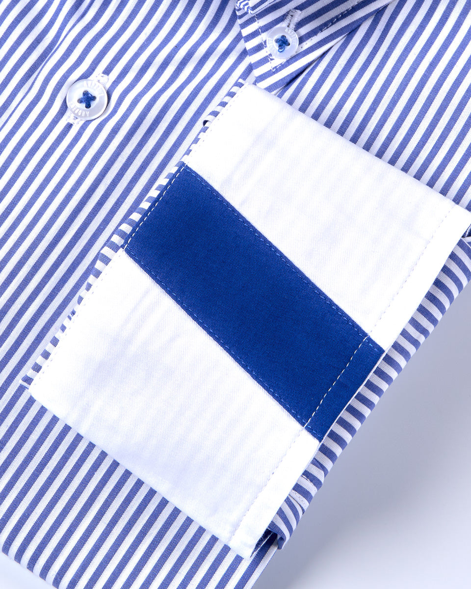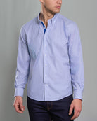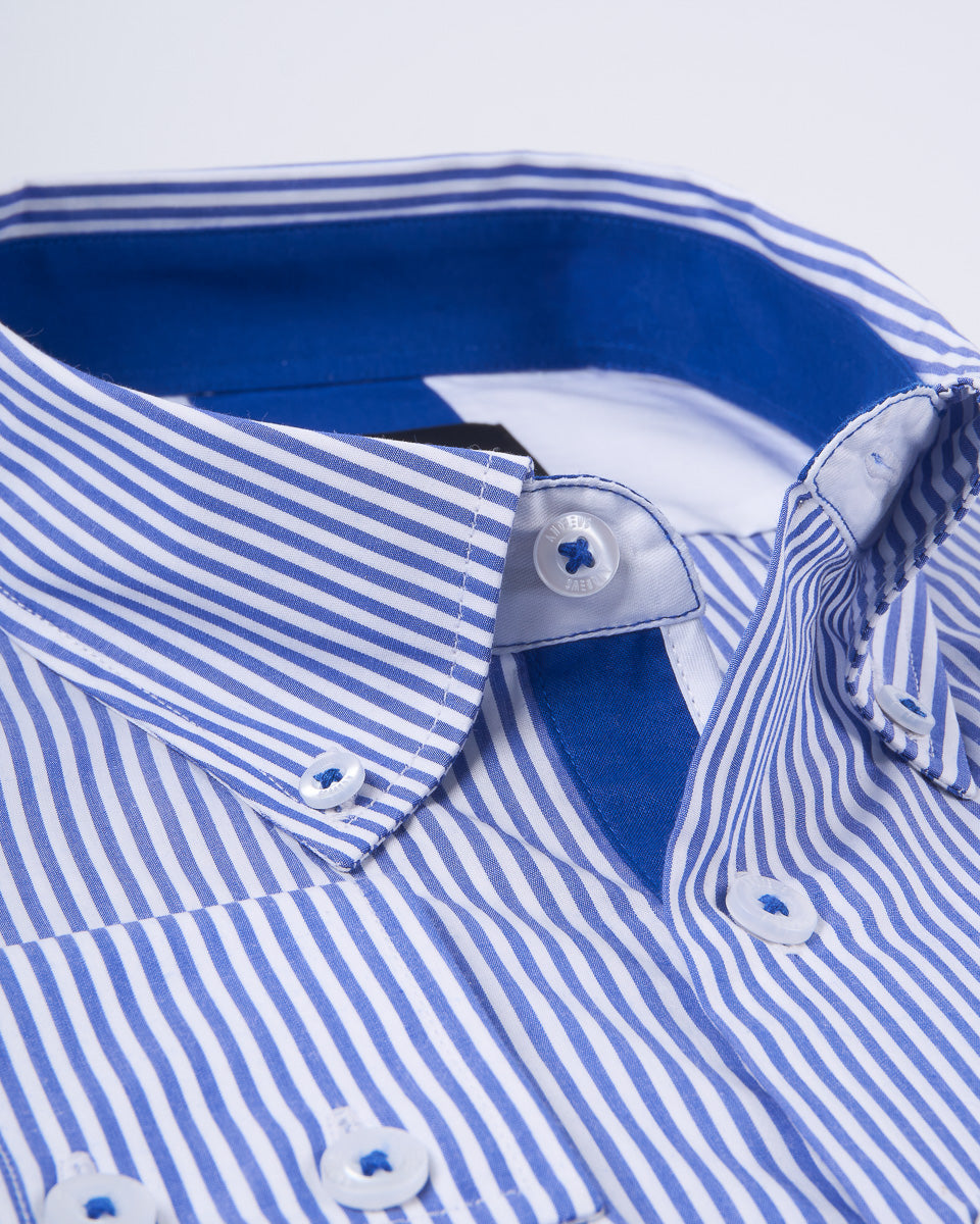 Camisa Casual A Rayas Azul con detalle Azulino