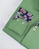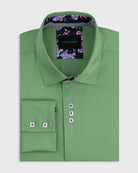 Camisa Casual - Verde con Contraste en el Puño, Cuello y Pechera