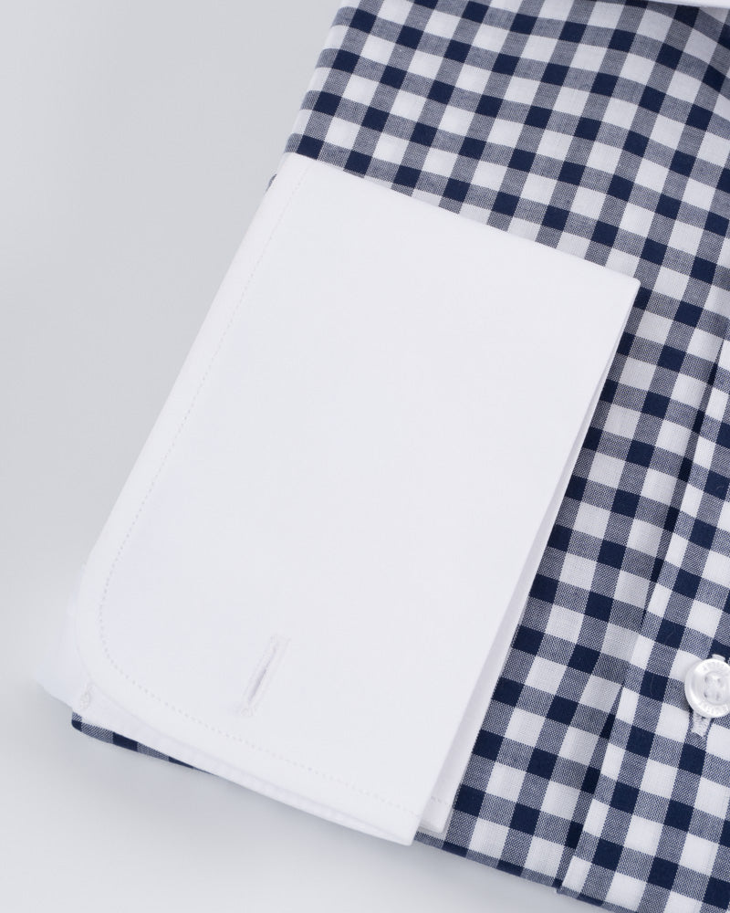 Camisa Vestir - Azul Cuadros Cuello y puño gemelo Blanco