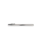 Inspirado en el movimiento del agua, este pasador de corbata plateado presenta un relieve ondulado que aporta dinamismo y sofisticación al diseño. Su acabado pulido resalta las formas y crea un juego de luces elegante y moderno, ideal para complementar un look formal con un toque distintivo.
