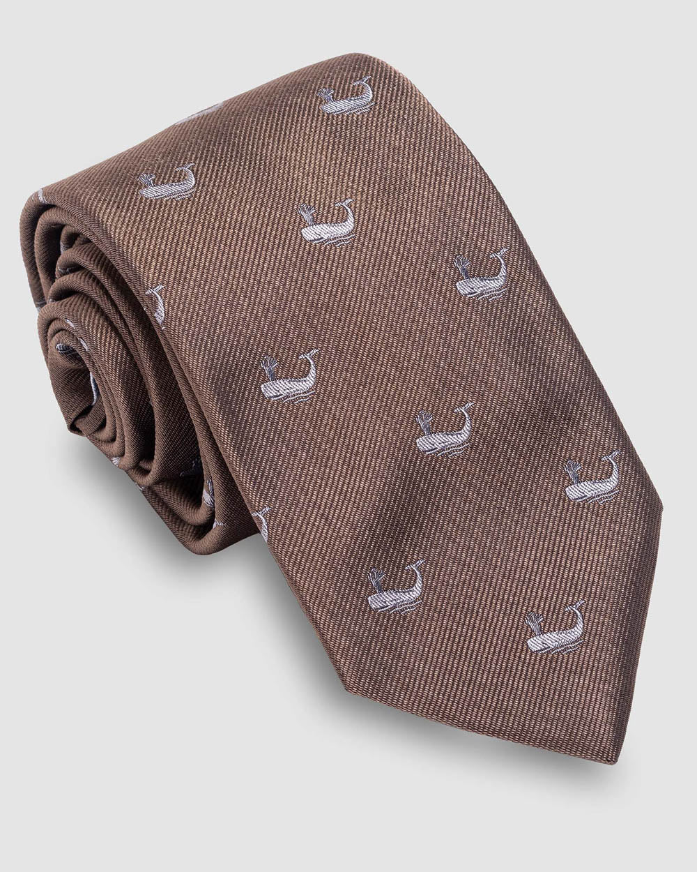 Brown Background Tie with Whale Design