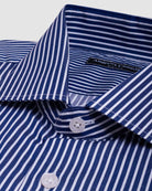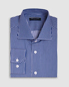 Satin dobby dress shirt - Italian collar, regular single cuff, blue