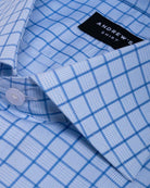 Twisted poplin dress shirt - Italian collar, 2-button cuff, regular blue