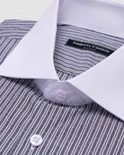 A beautiful dobby shirt with detailed collar and cuffs. Crafted from Andrews' richly textured dobby weave, with an elegant sheen and a wrinkle-resistant finish, the dobby is woven with a white base yarn alongside two subtle shades of lilac to create an elegant 3D texture perfect for business wear.