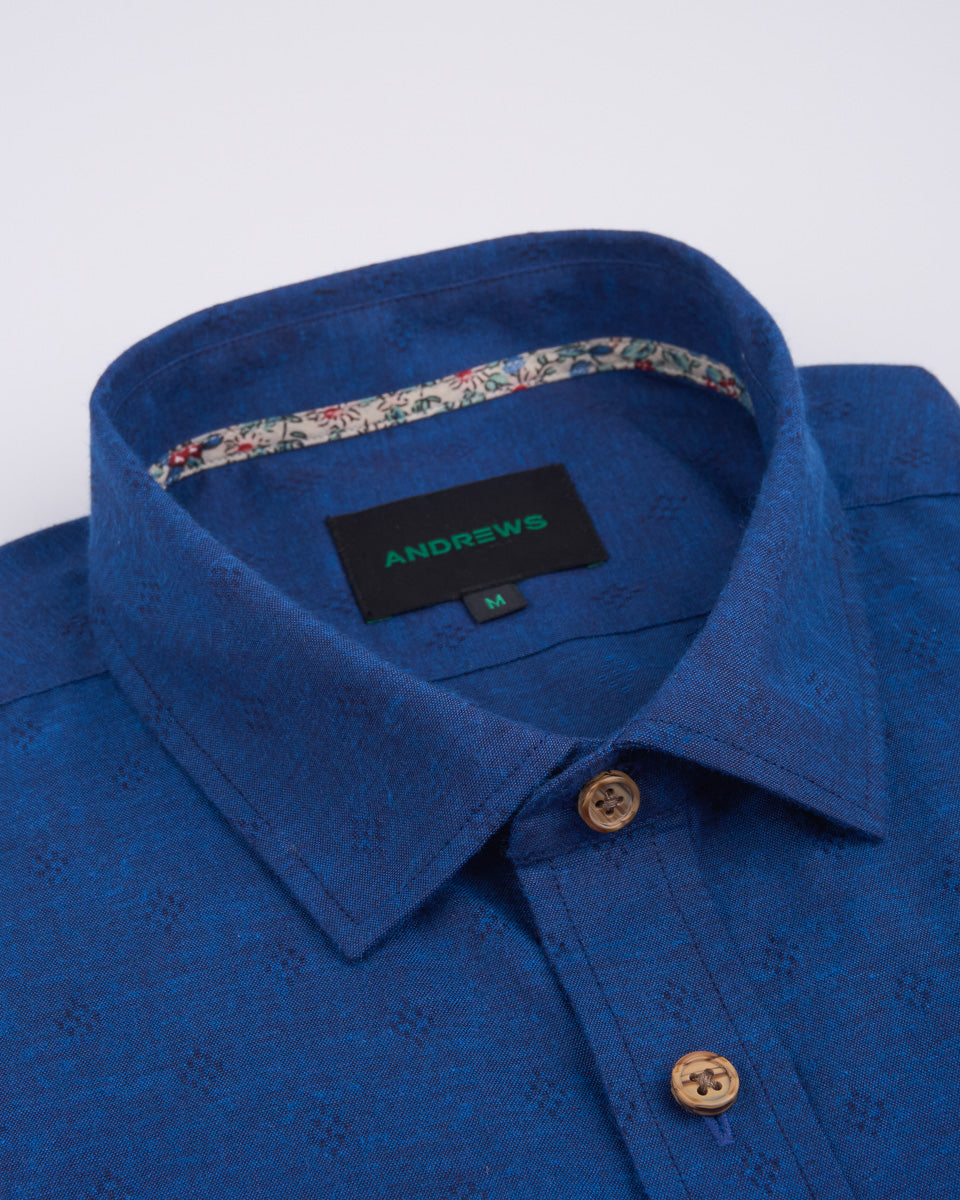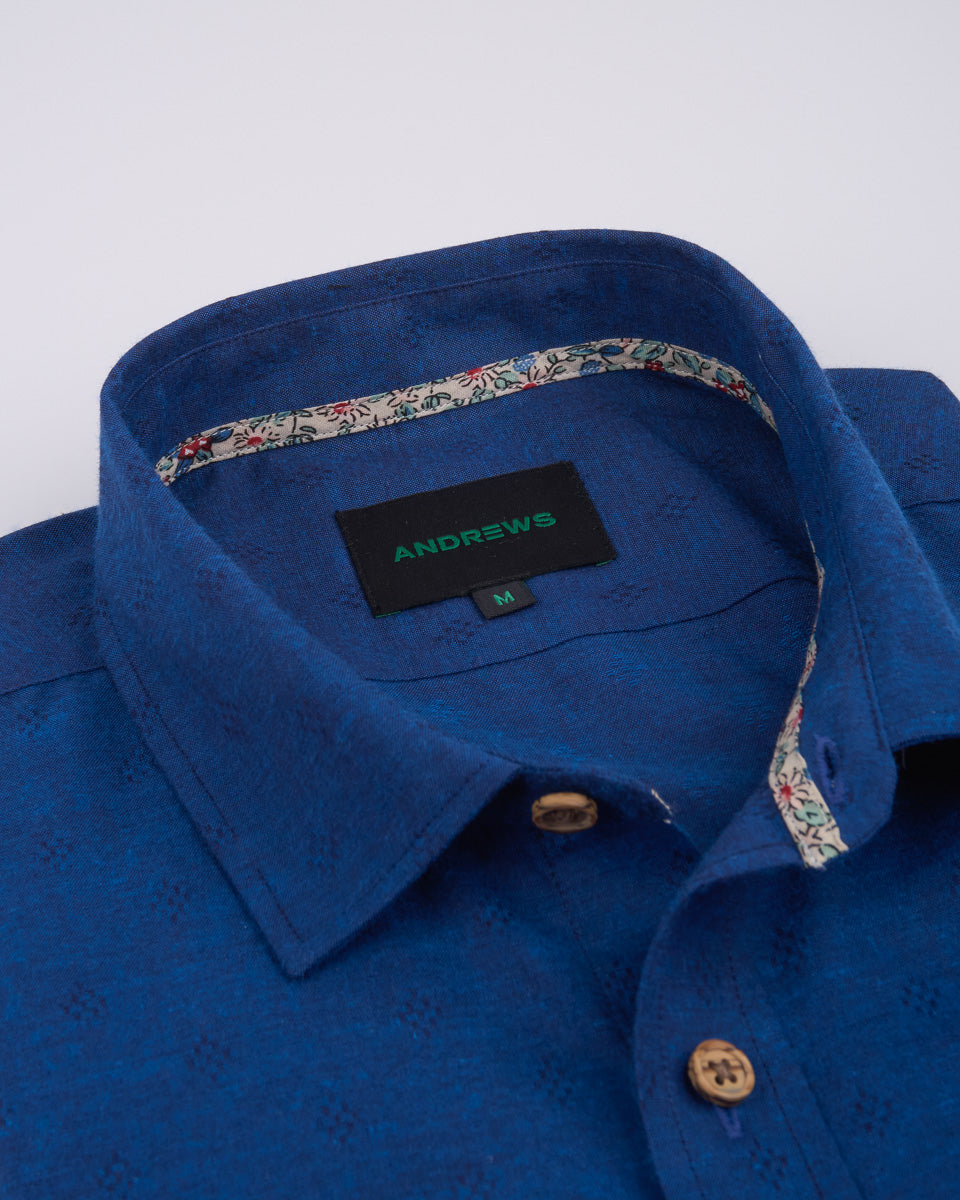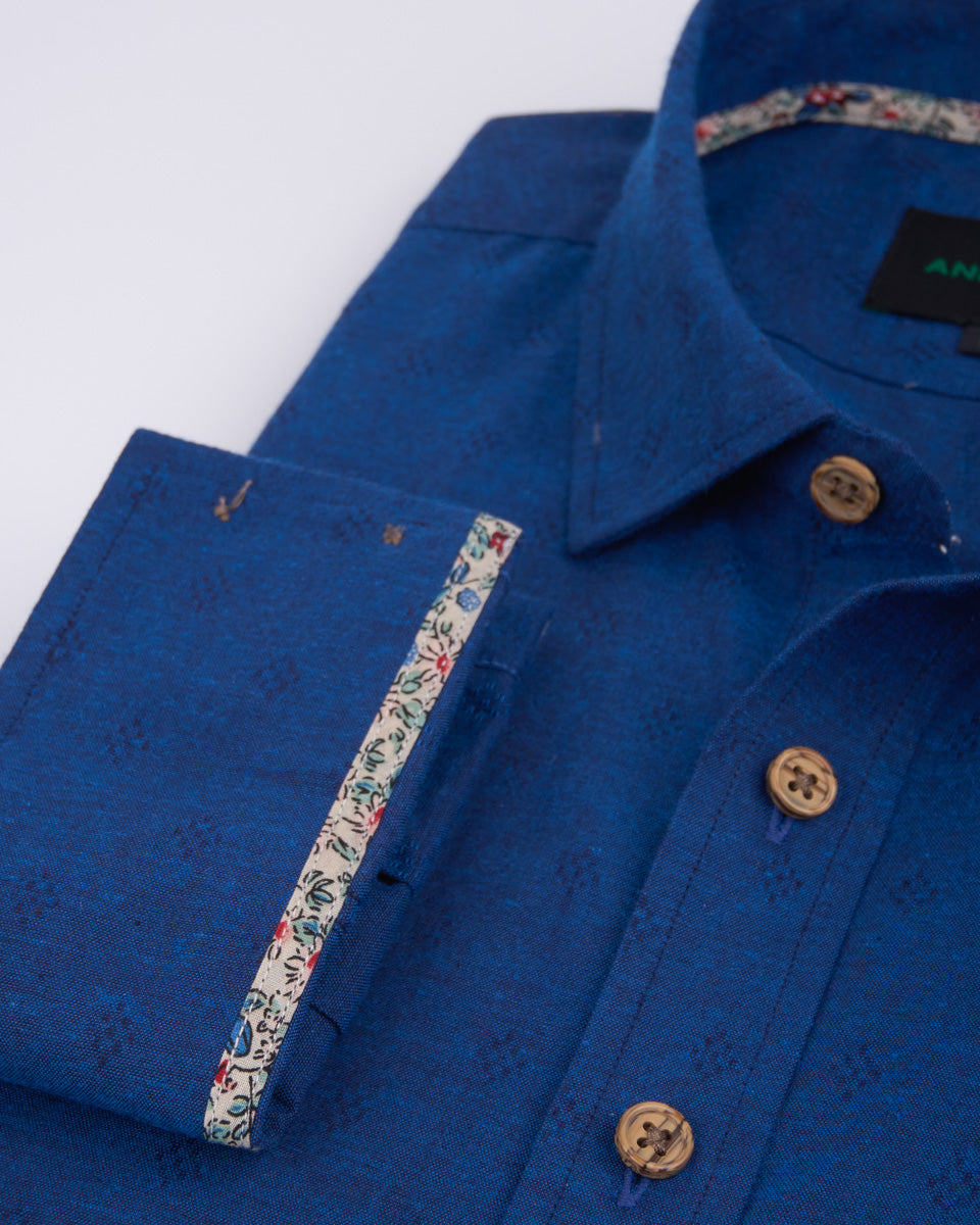 Dobby Dress Shirt - Italian Collar, Double Cuff, Regular Use, Blue