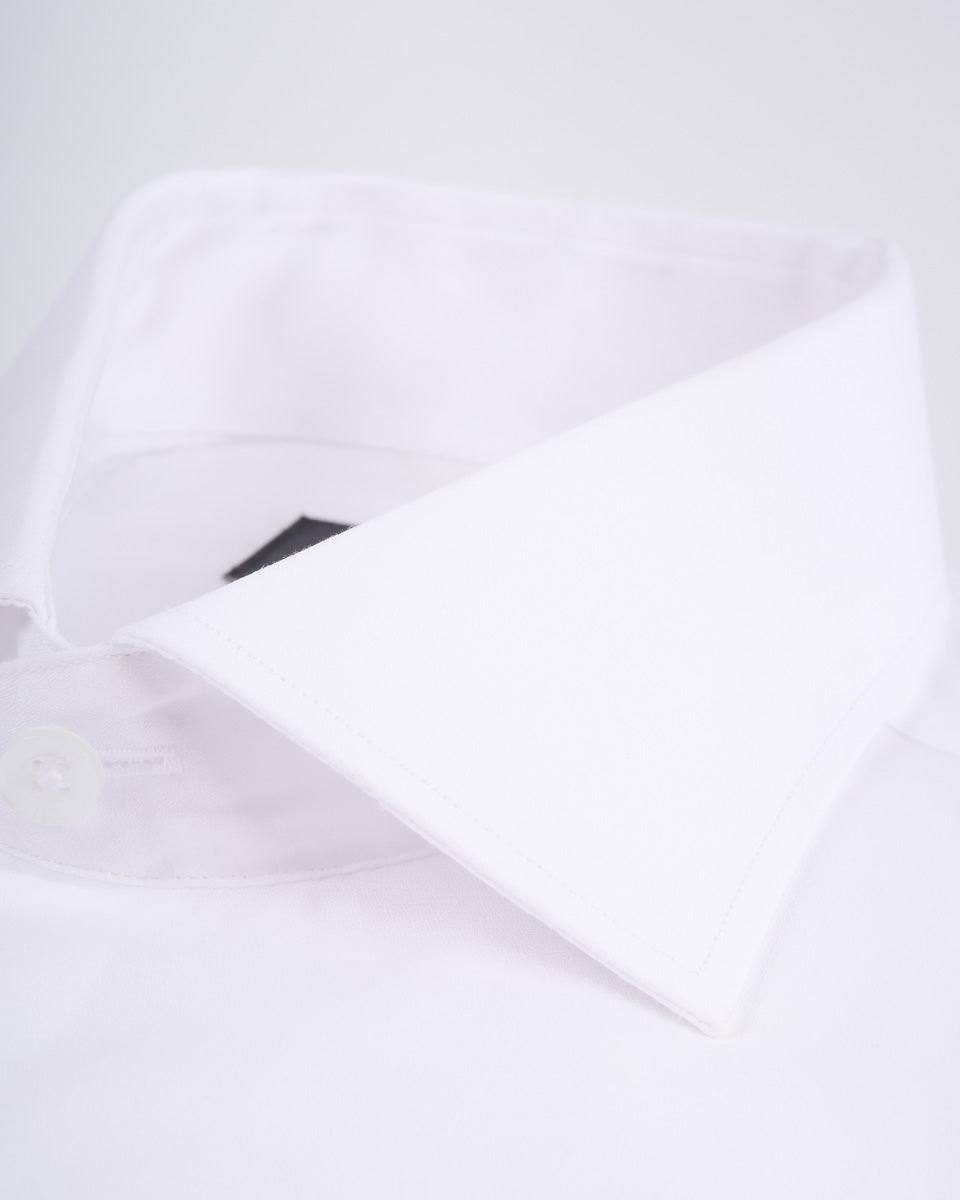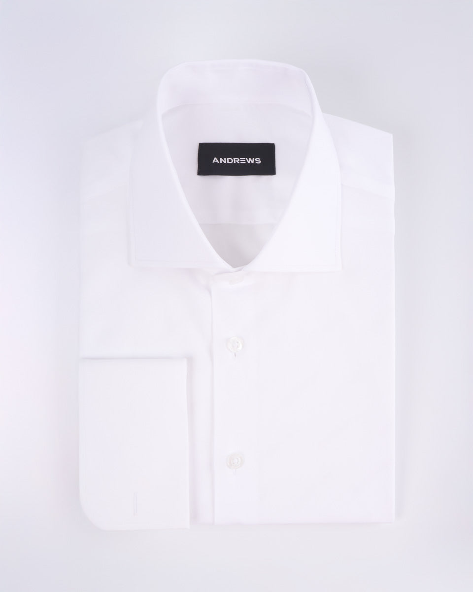 Camisa Vestir popelin - Cuello Italiano puño gemelo regular blanco