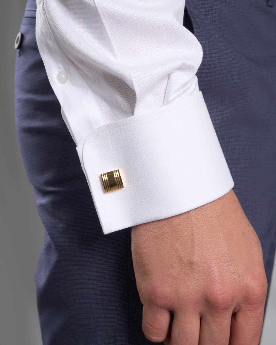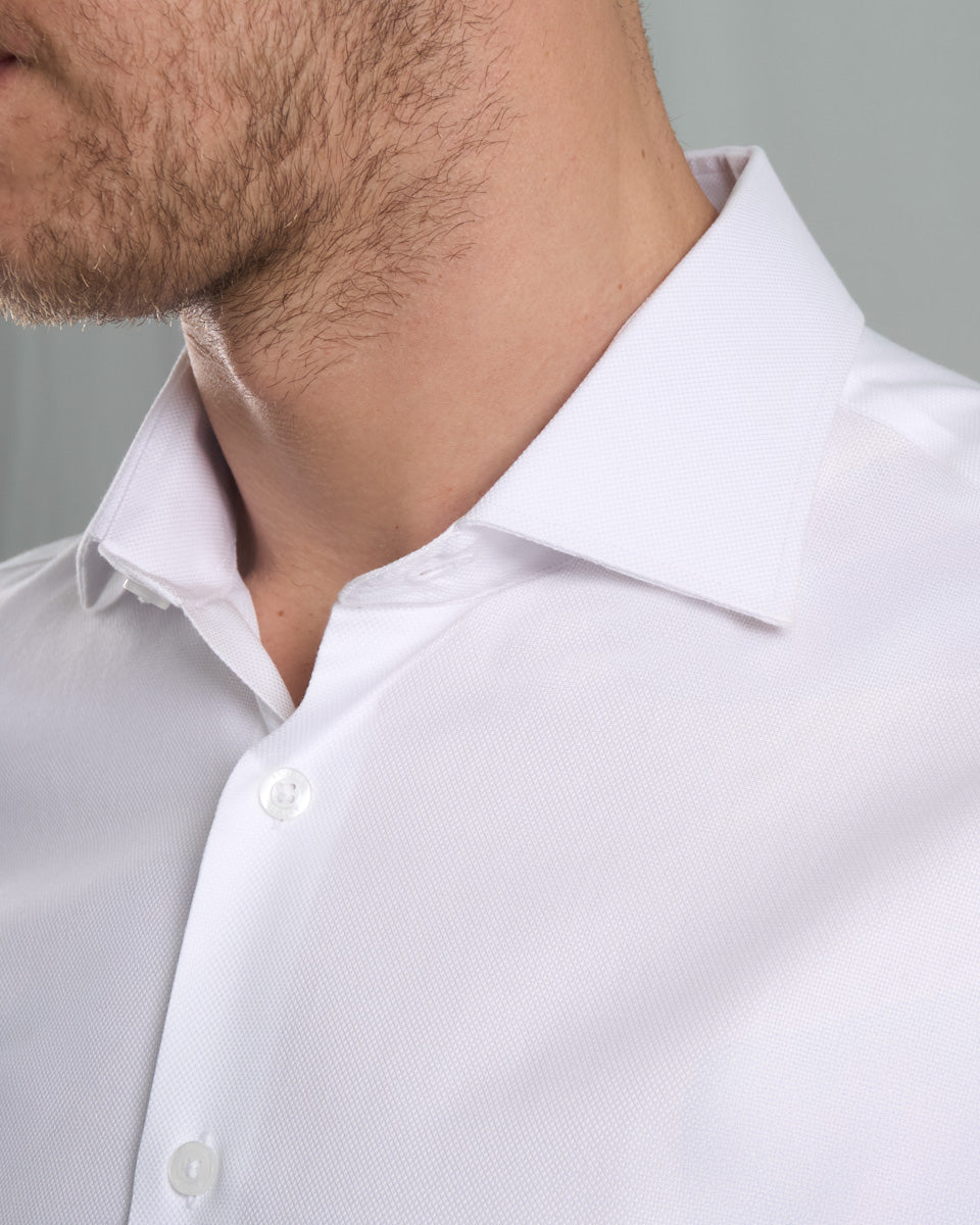 Camisa Vestir Oxford - Cuello Italiano gemelo redondo regular blanco