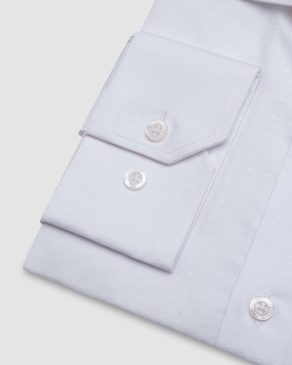 Una preciosa camisa de dobby con detalles en el cuello y el puño. Confeccionada con el tejido Dobby de Andrews, de rica textura y elegante brillo, y con un acabado resistente a las arrugas, el dobby está tejido con un hilo base blanco junto con dos sutiles tonos de lila para crear una elegante textura en 3D perfecta para la ropa de negocios.