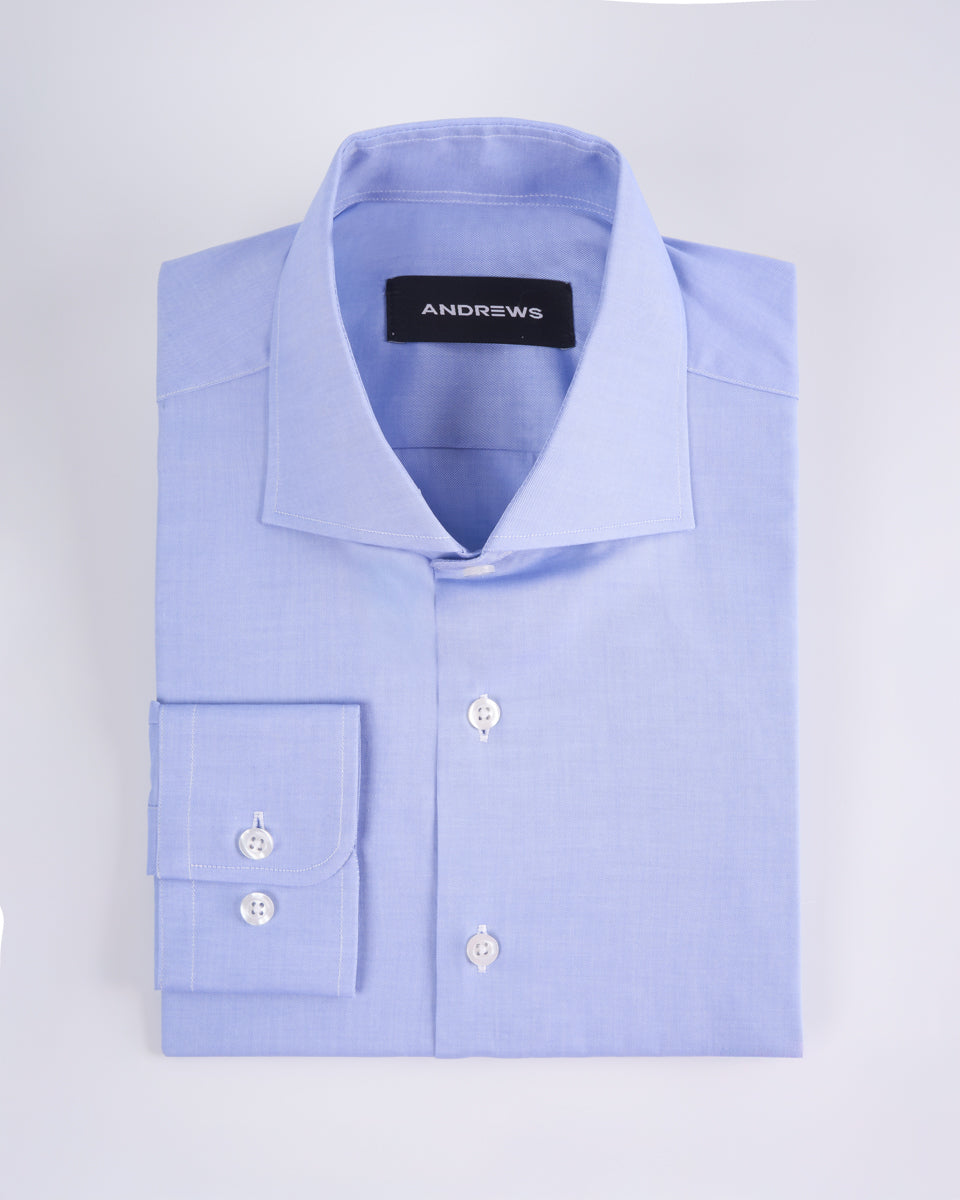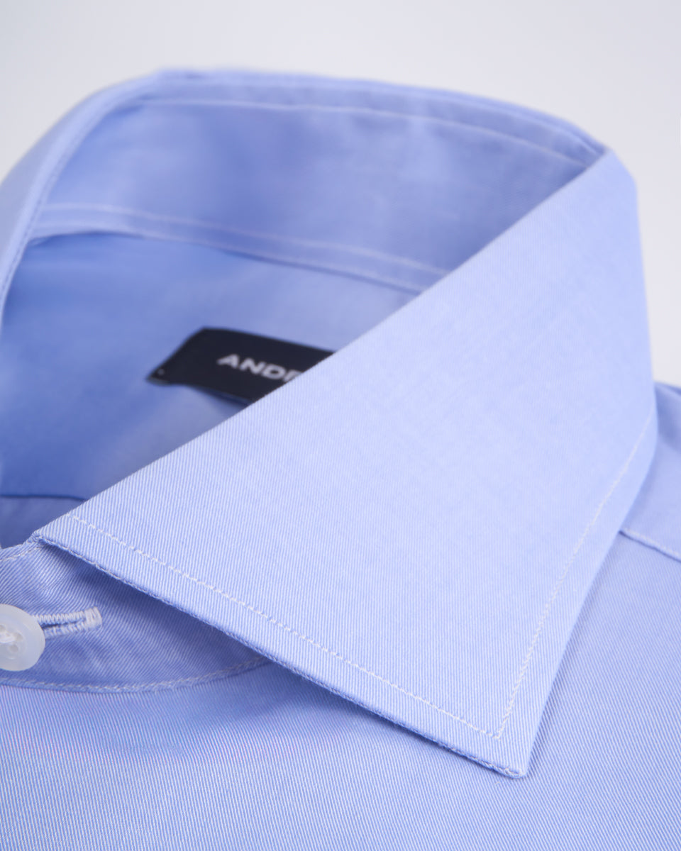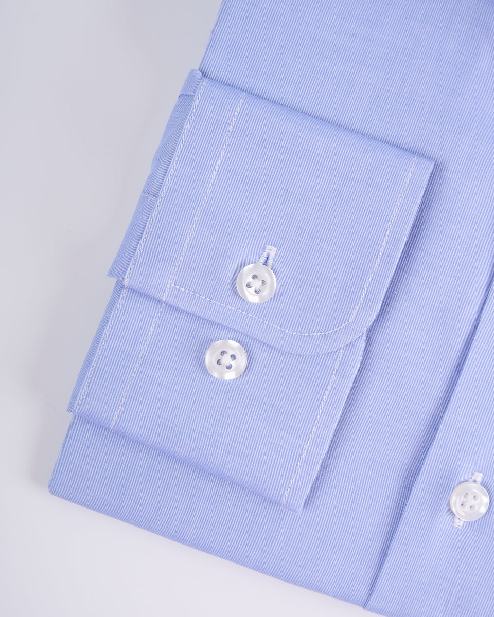 Camisa Vestir twill - Cuello Italiano Puño Simple regular azul