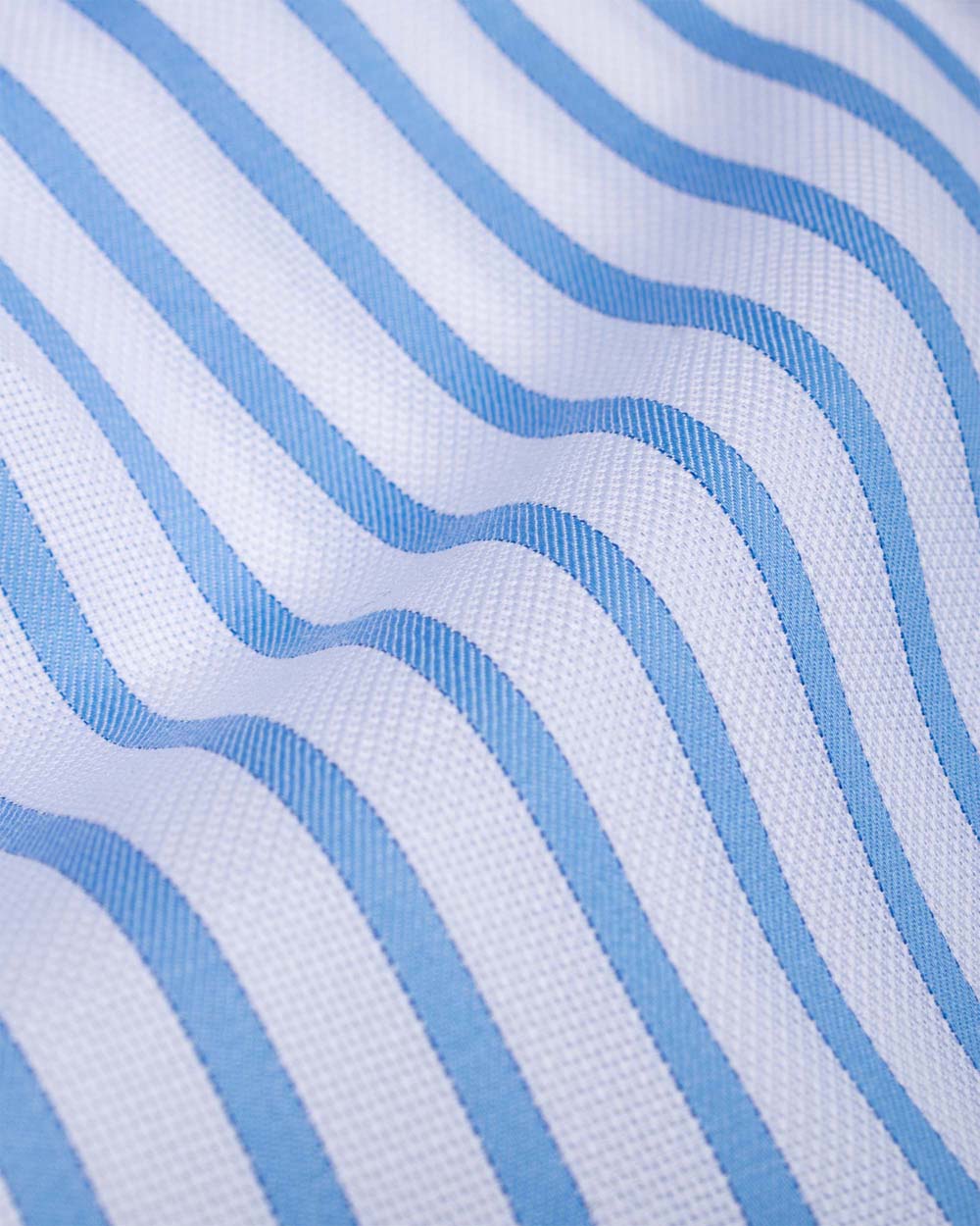 Una preciosa camisa de dobby con detalles en el cuello y el puño. Confeccionada con el tejido Dobby de Andrews, de rica textura y elegante brillo, y con un acabado resistente a las arrugas, el dobby está tejido con un hilo base blanco junto con dos sutiles tonos de lila para crear una elegante textura en 3D perfecta para la ropa de negocios.