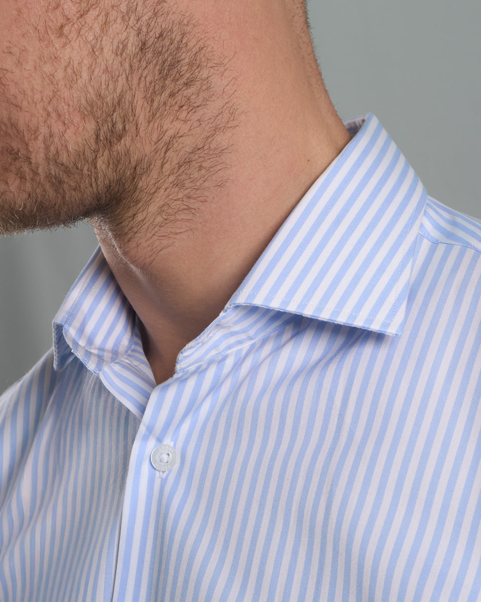 Camisa Vestir popelin retorcido - Cuello Italiano Puño 2 botones regular azul