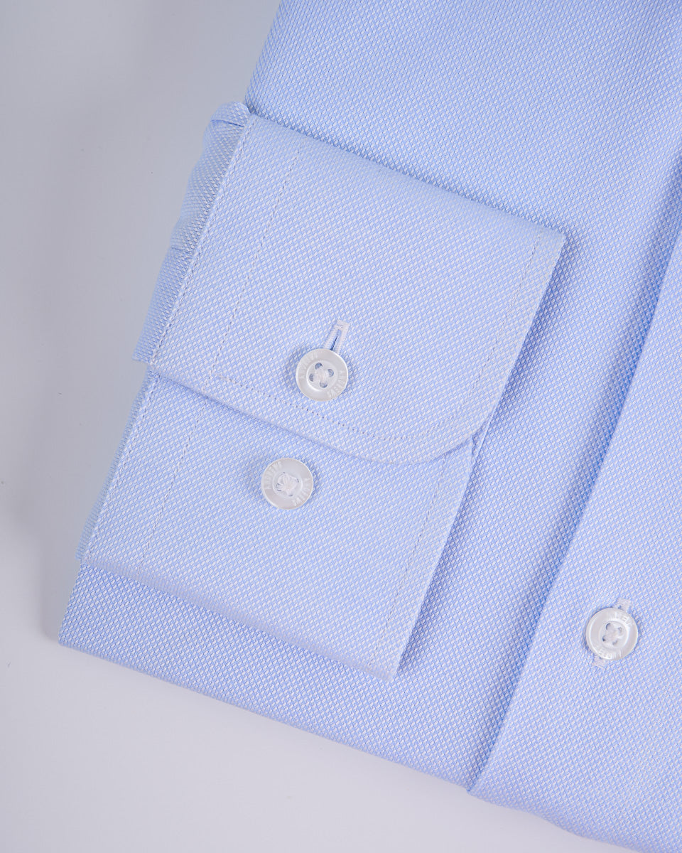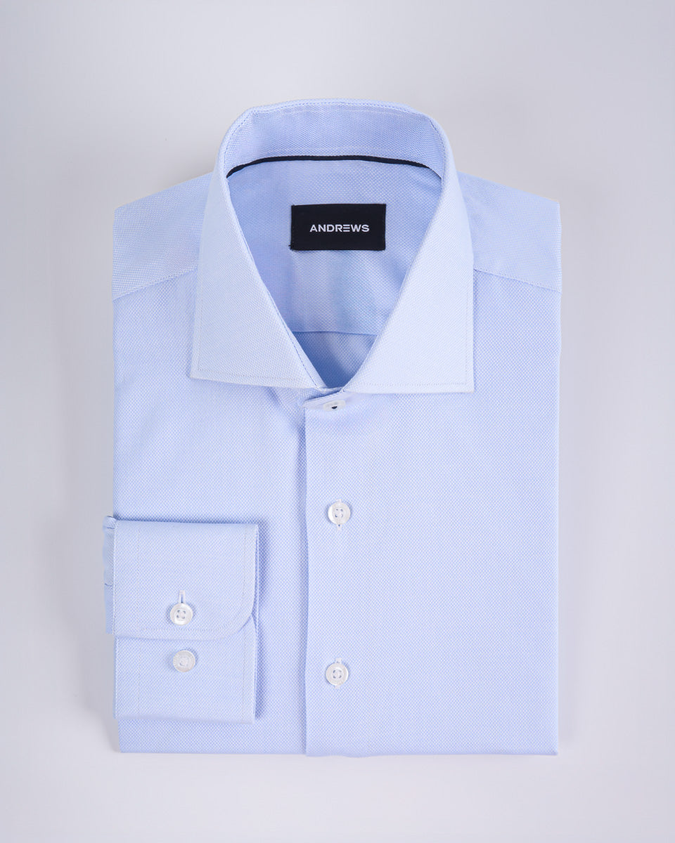 camisa vestir dobby - Cuello Italiano puño redondo 2 botones regulable regular azul