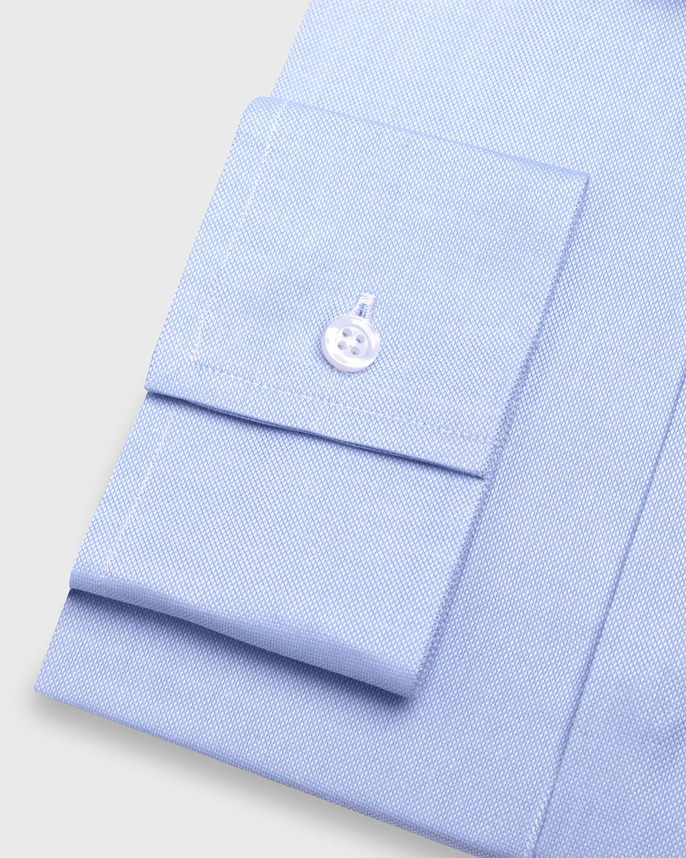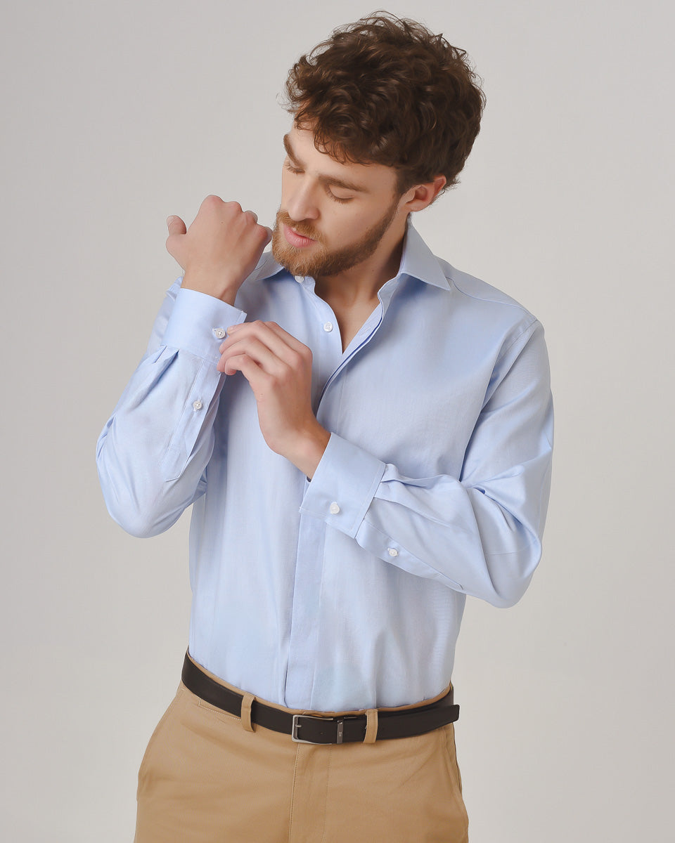 Camisa Vestir dobby - Cuello Italiano puño doble uso regular Celeste