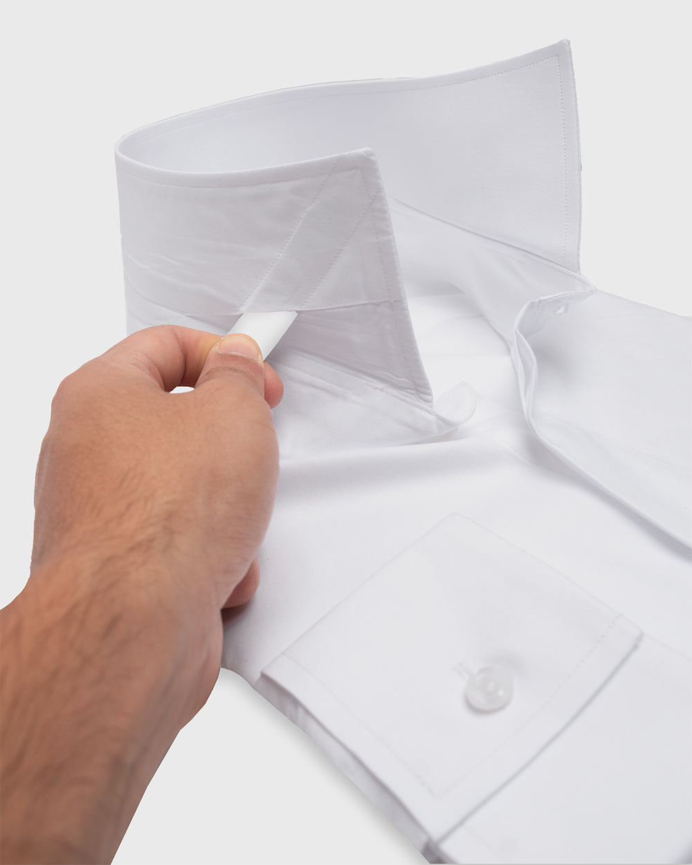 Camisa Vestir twill - Cuello Italiano puño doble uso regular blanco