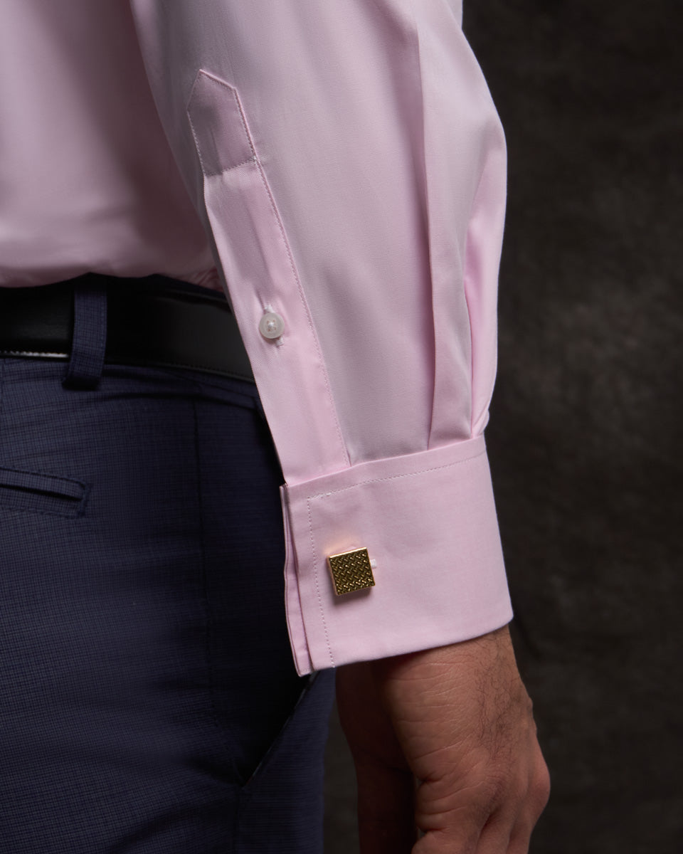 Camisa Vestir twill - Cuello Italiano puño doble uso - Rosado