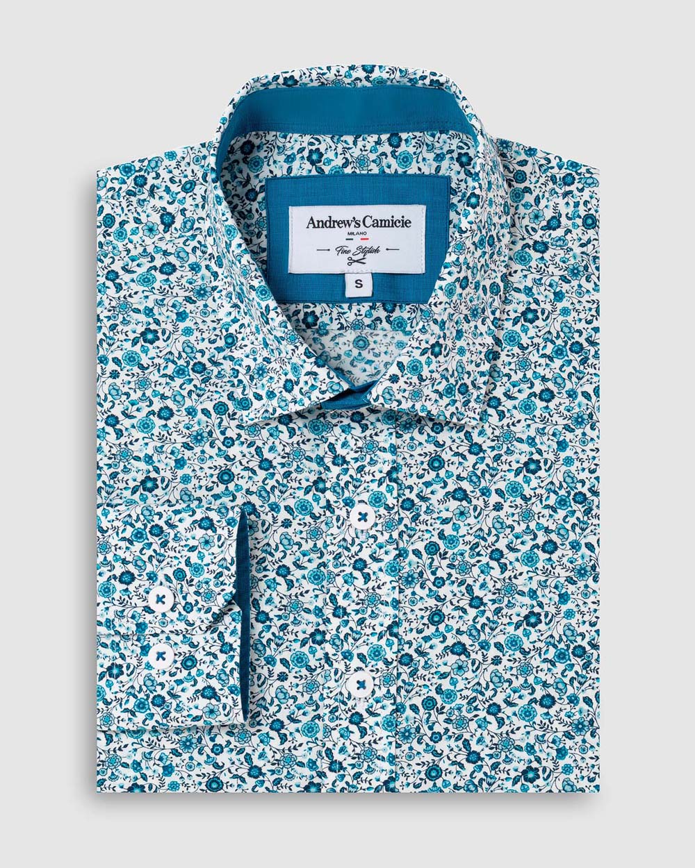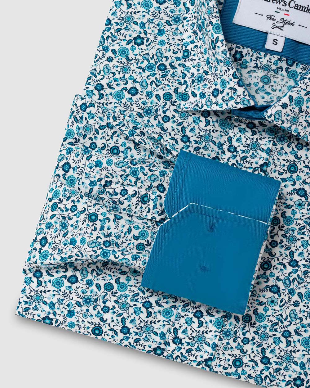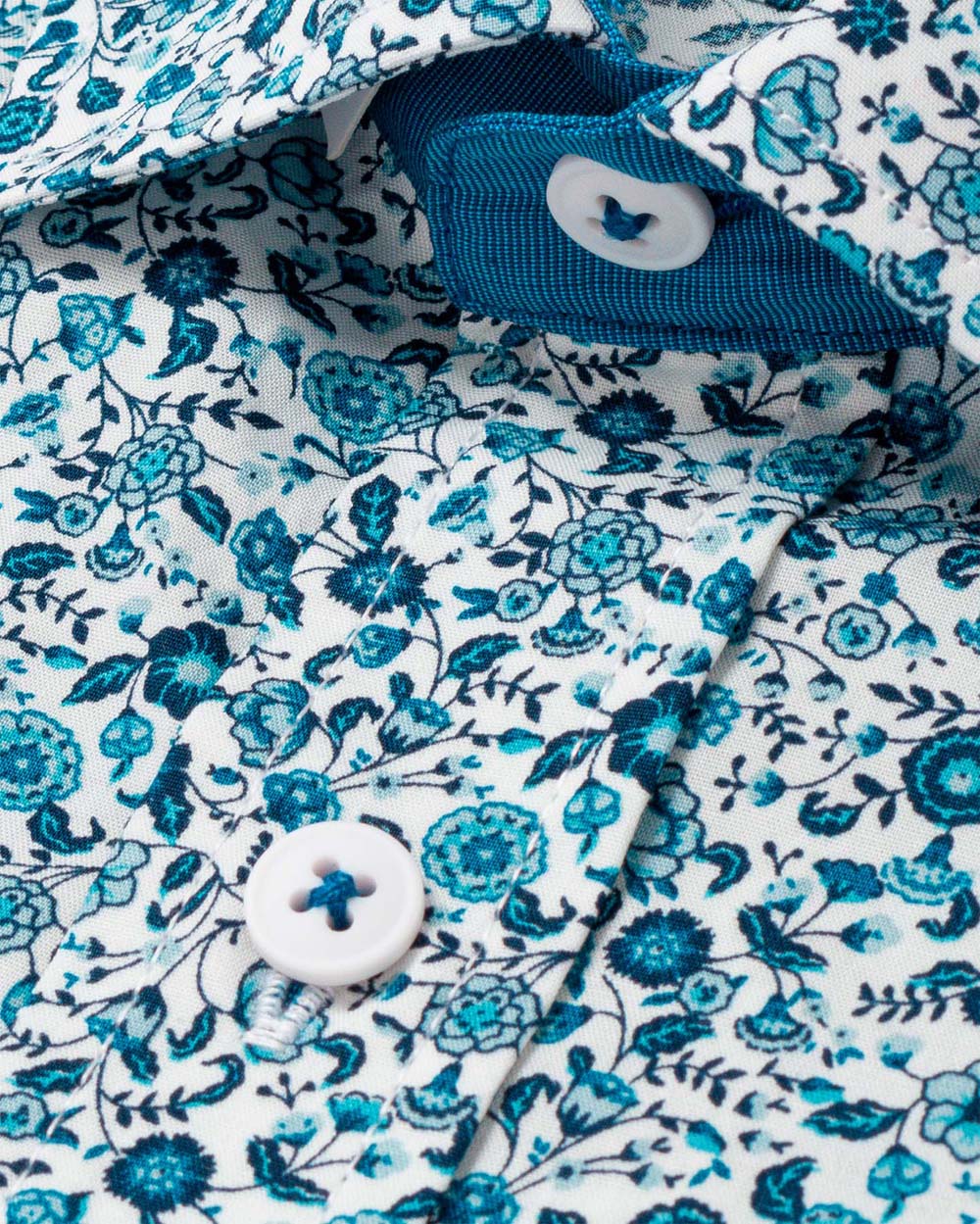 Camisa Casual popelin estampada - Cuello Italiano puno simple 2 botones regulables regular turquesa