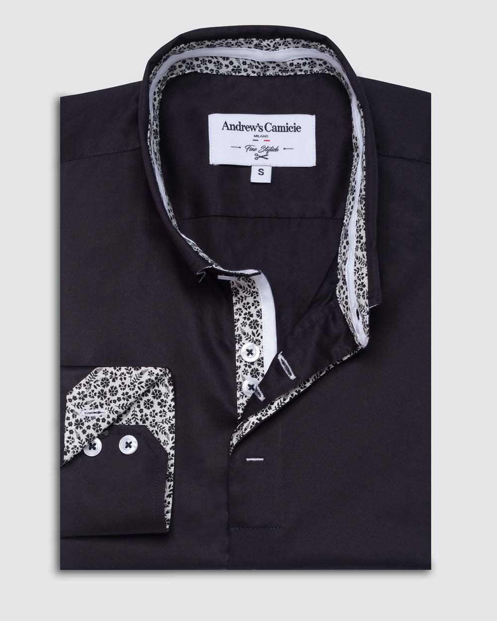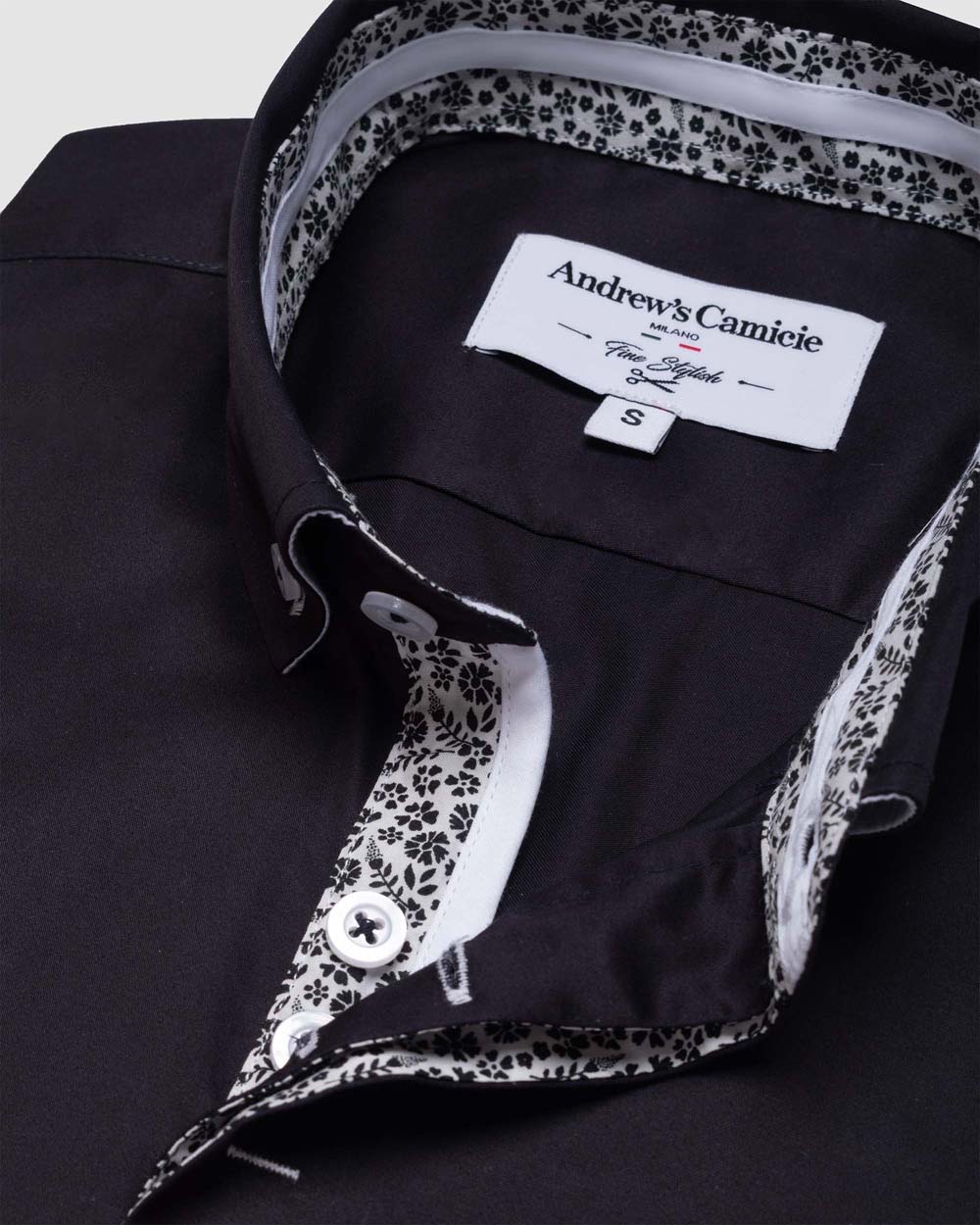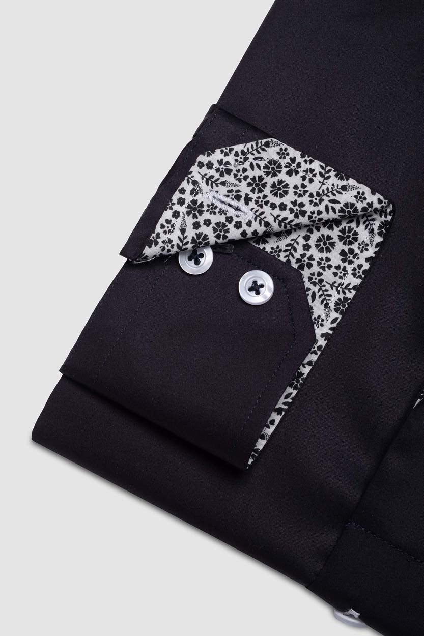 Camisa Casual dobby satín - cuello button-down puño simple 2 botones regular negro