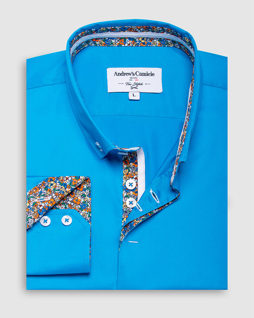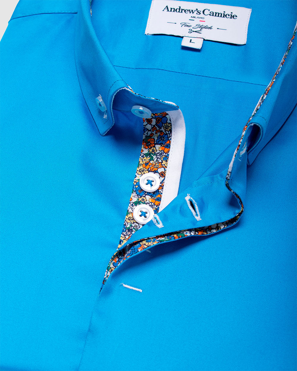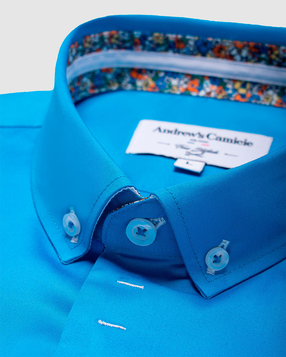 Camisa Casual dobby satín - cuello button-down puño simple 2 botones regular turquesa