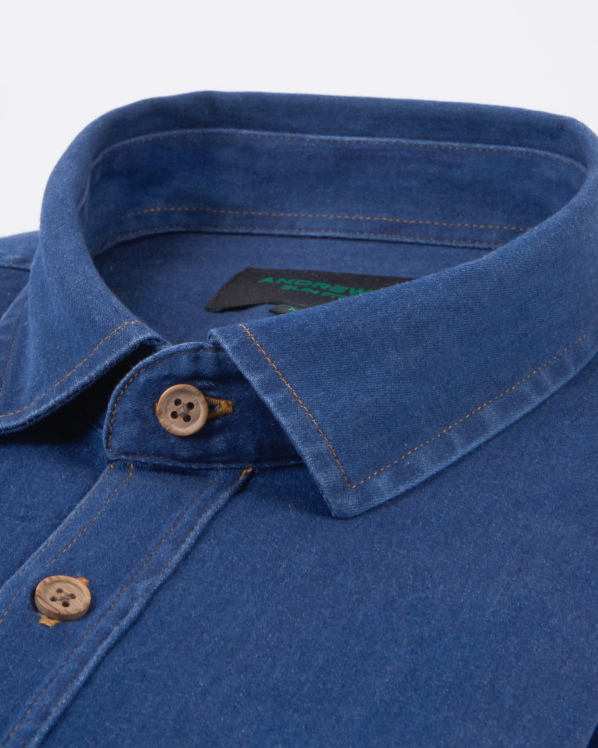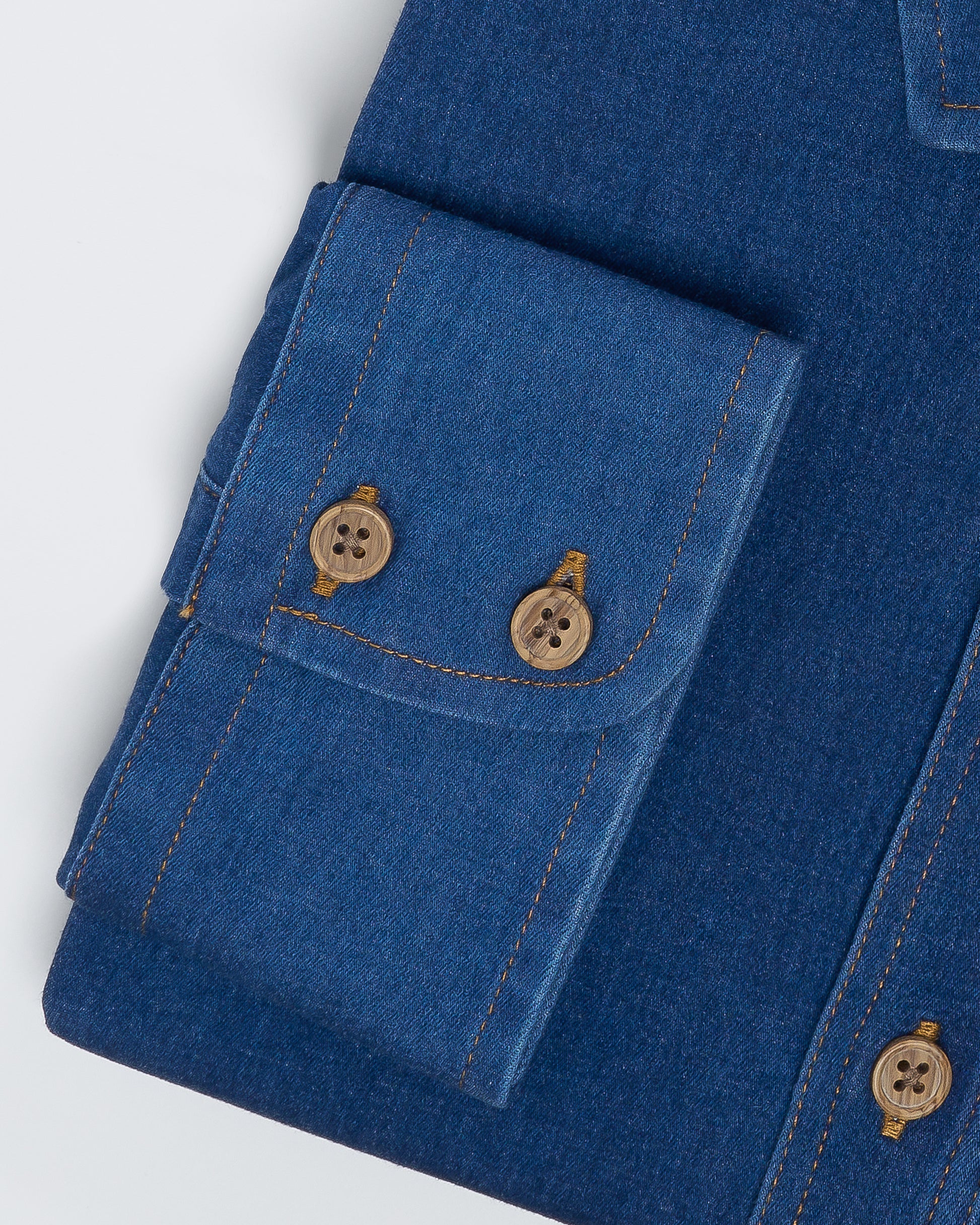 Camisa Casual denim stretch- Puño simple 2 botones slim azul