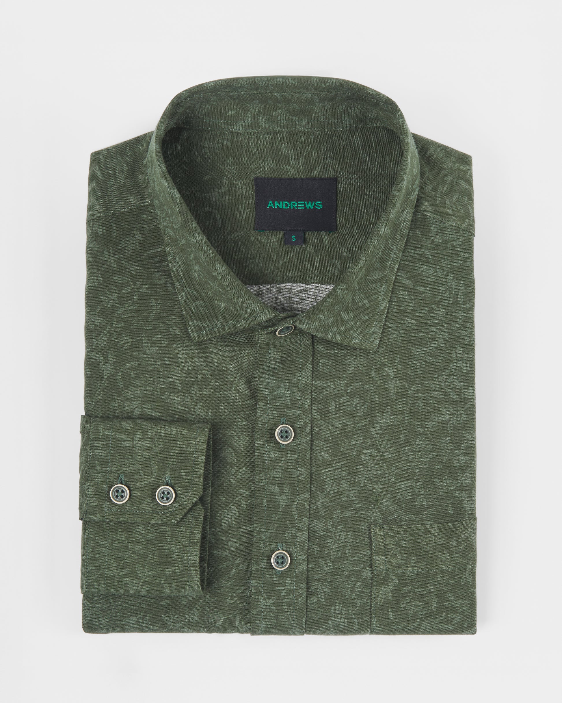 Camisa Casual Estampada Verde Con bolsillo