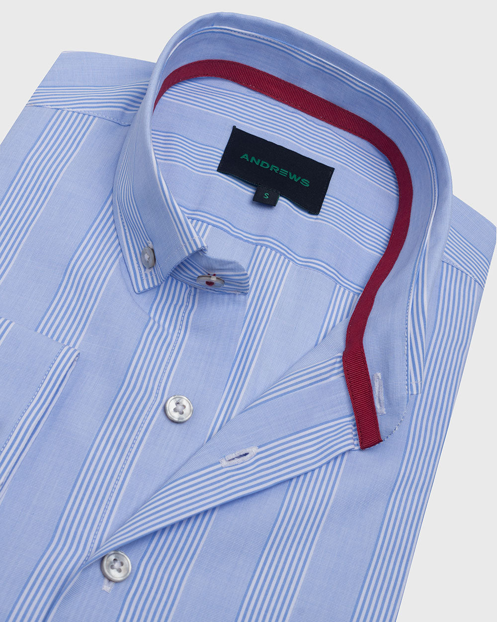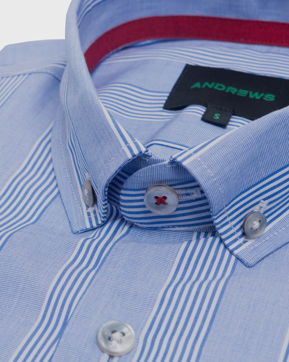 Camisa Casual twill - cuello button-down puño simple 2 botones regular azul