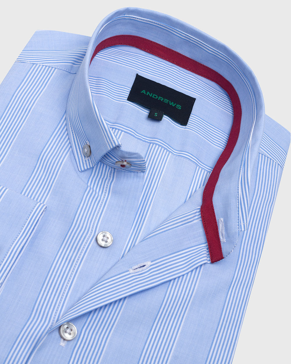 Camisa Casual twill - cuello button-down puño simple 2 botones regular azul