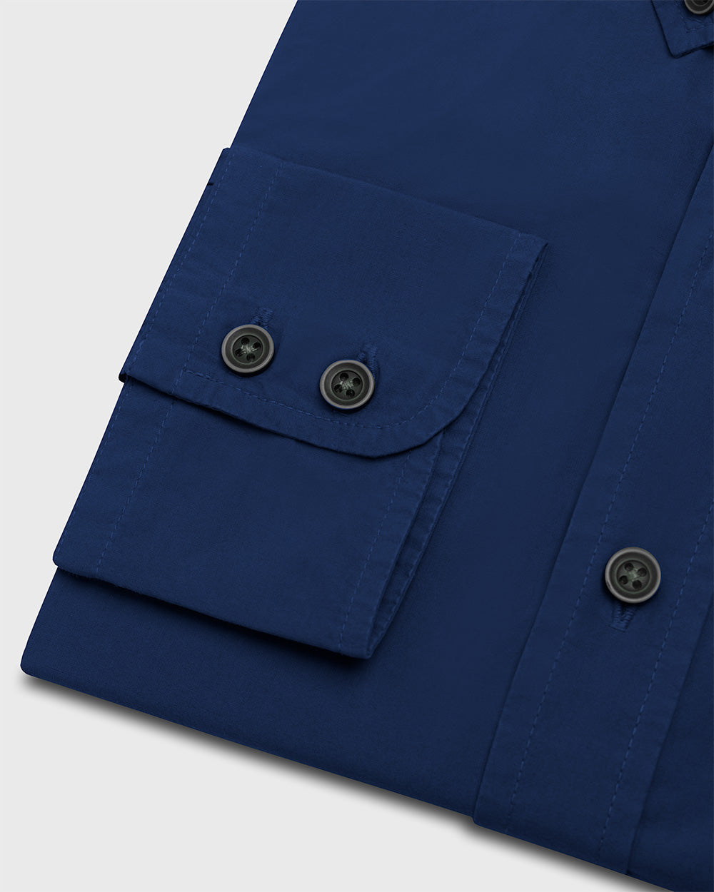 Camisa Casual Garment Dye - cuello button-down puño simple 2 botones azul
