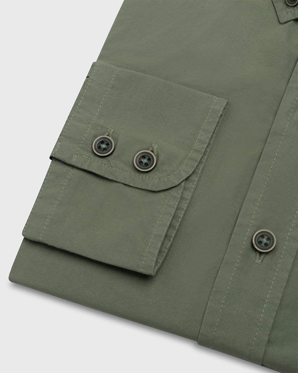 Camisa Casual Garment Dye - cuello button-down puño simple 2 botones verde