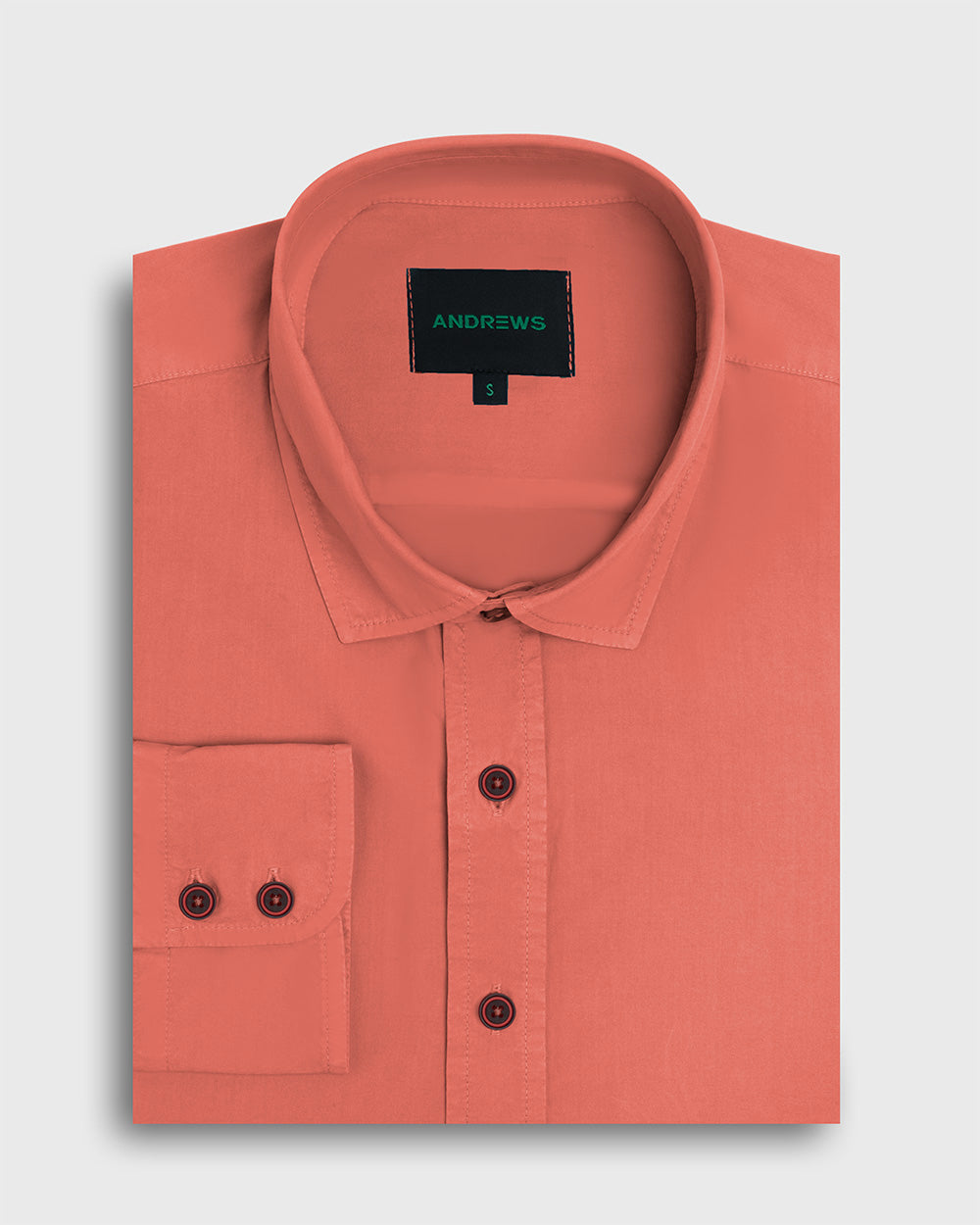 Camisa Casual Garment Dye - Puño simple 2 botones naranja