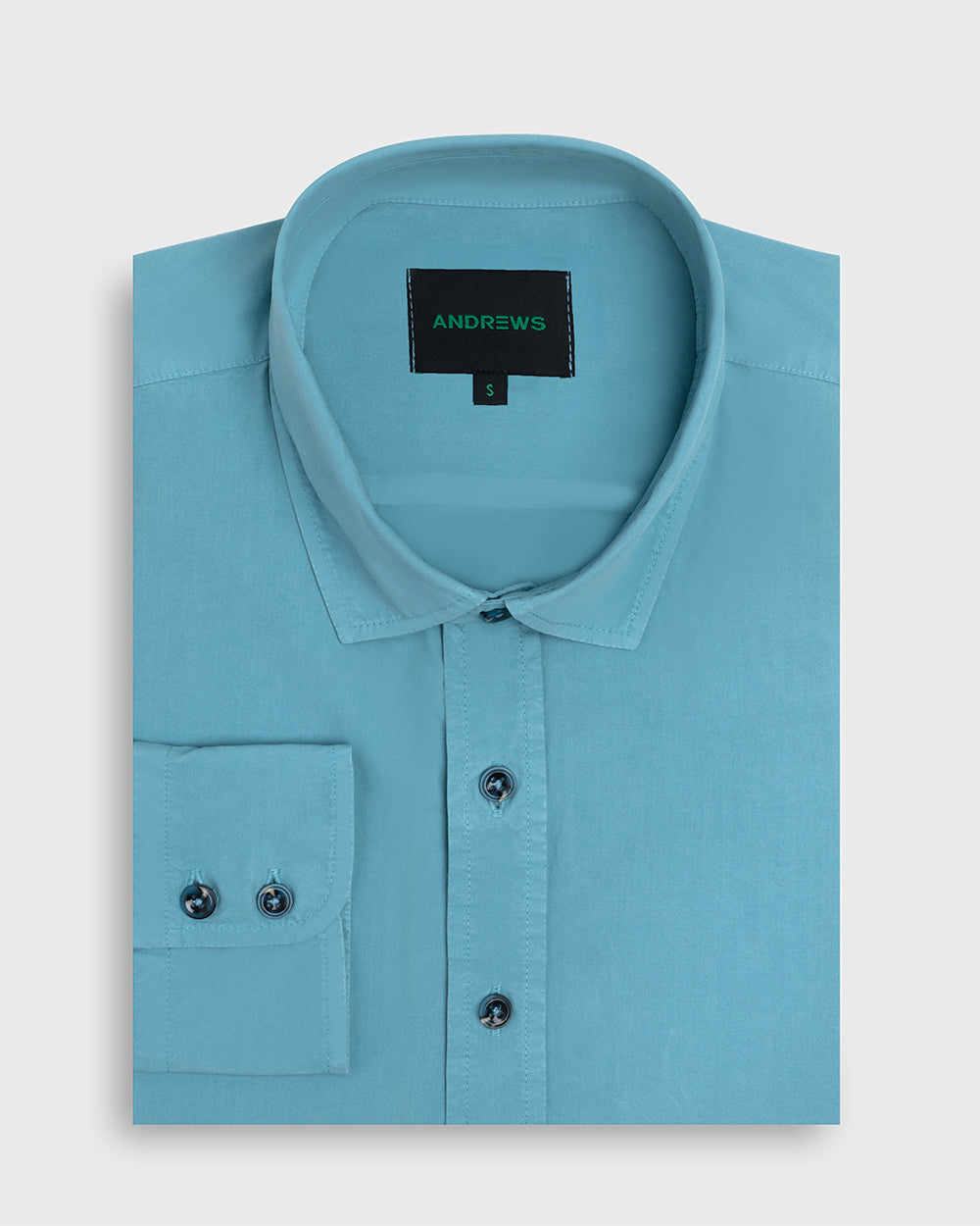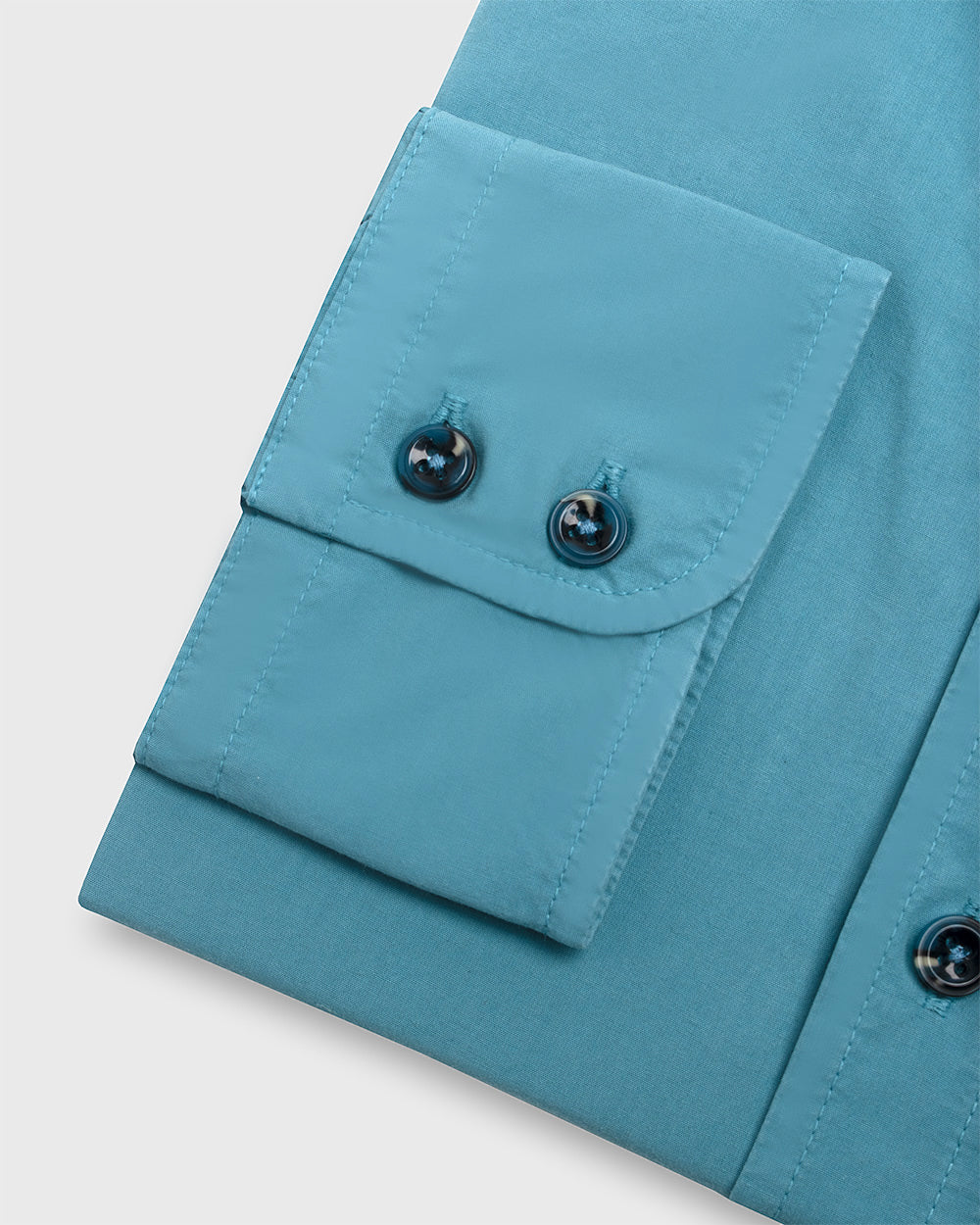 Camisa Casual Garment Dye - Puño simple 2 botones turquesa