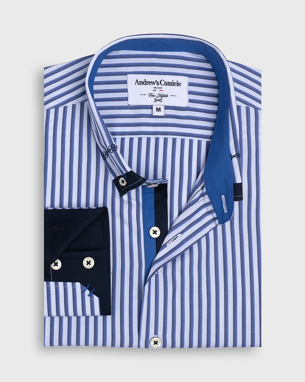 Camisa Casual popelin rayas - cuello button-down puño simple 2 botones regular azul